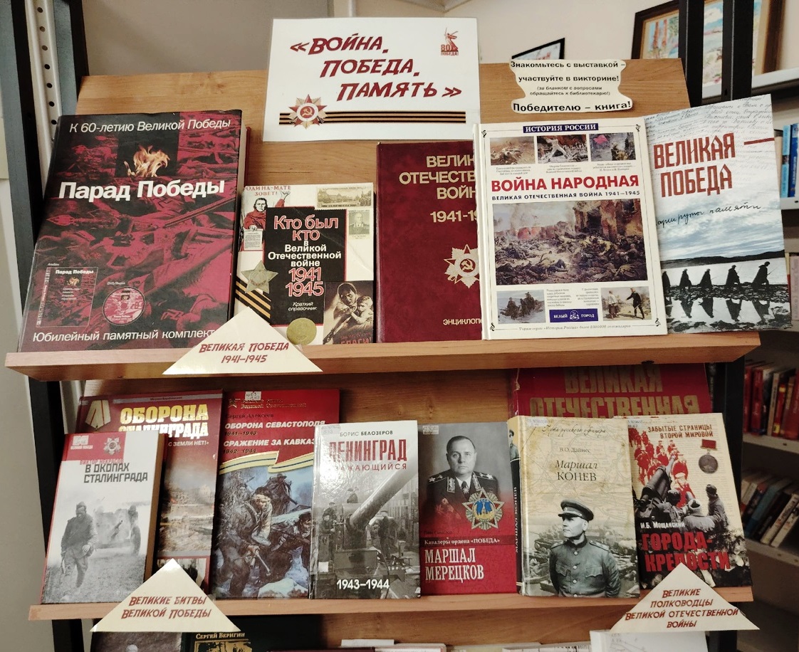 В этом году наша страна отмечает 80-летие Победы в Великой Отечественной войне. К этой знаменательной дате приурочена книжная выставка-реквием «Война. Победа. Память», которая открылась 5 ноября в Библиотеке № 11 (ул. Нойбранденбургская, д. 25).