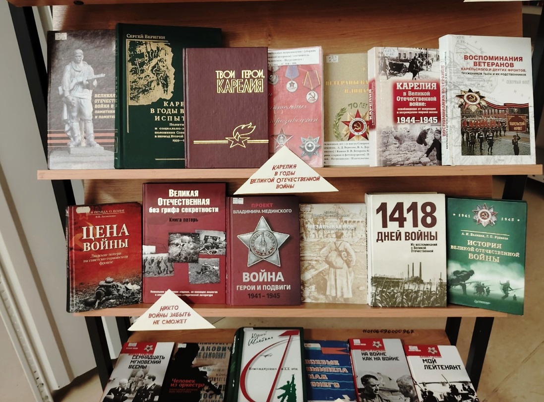 Отметим также, что Централизованная библиотечная система Петрозаводска подготовила для читателей рекомендательный библиографический список литературы «Война. Победа. Память». В перечень включены историко-документальные и художественные произведения из фондов городских библиотек. Перечень изданий предназначен для школьников, студентов, преподавателей, краеведов, гидов, библиотекарей и всех, кто интересуется историей Великой Отечественной войны. Литературу из этого списка можно получить в библиотеках Петрозаводской ЦБС.