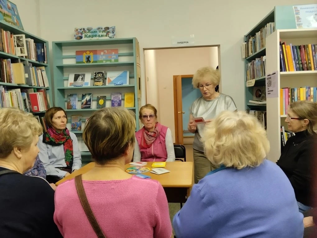 Зав.библиотекой Елена Иванова увлекла гостей квизом «Палитра народов Карелии». На территории нашей республики проживает более 150 национальностей. У них свои традиции, праздники, культура, кухня, но все живут у нас в мире и согласии. Участники игры познакомились с разными народами нашего края, отвечали на вопросы и разгадывали загадки. В ходе игры они узнали интересные факты о культуре, традициях и истории Карелии и провели время с удовольствием.