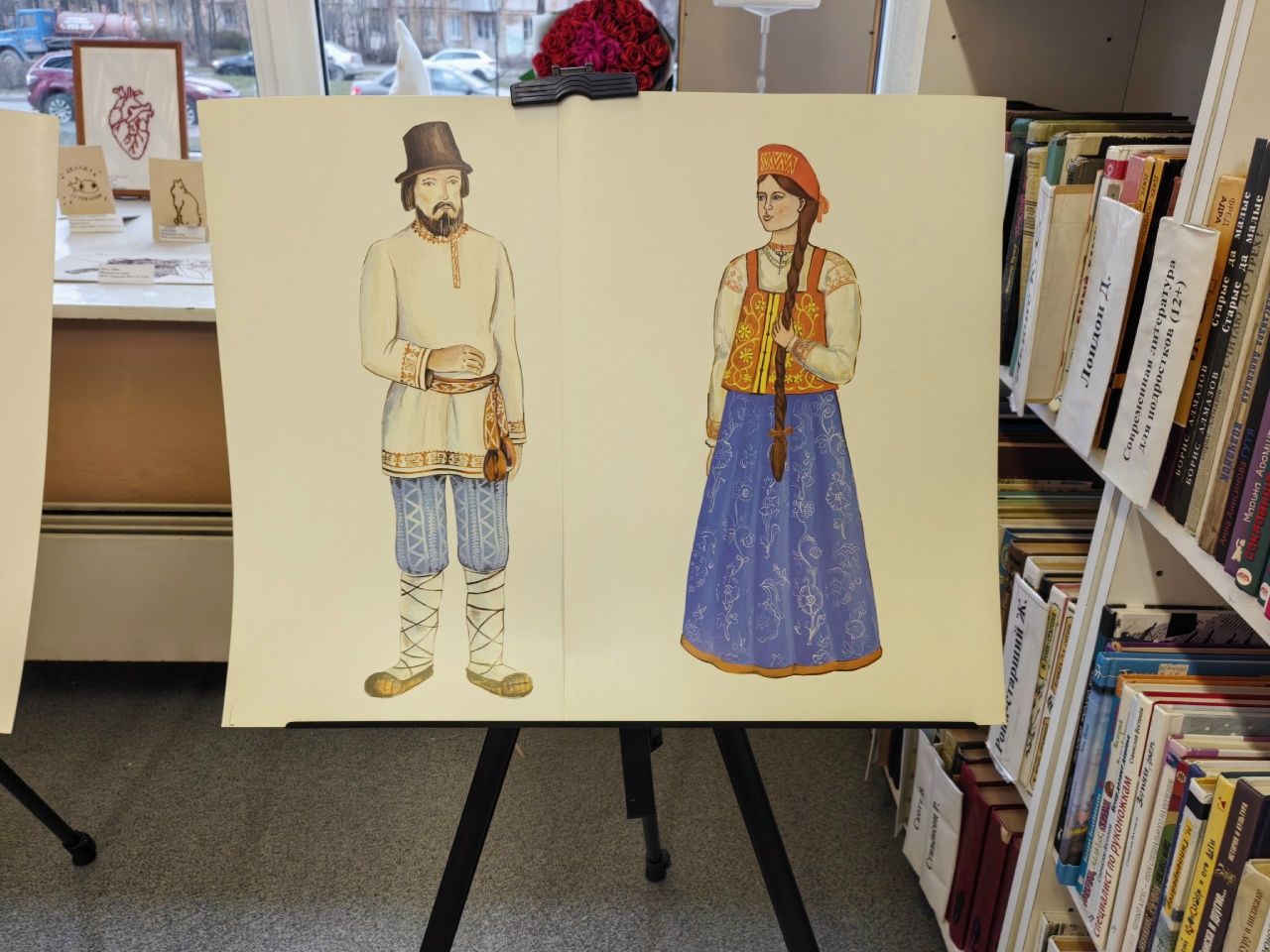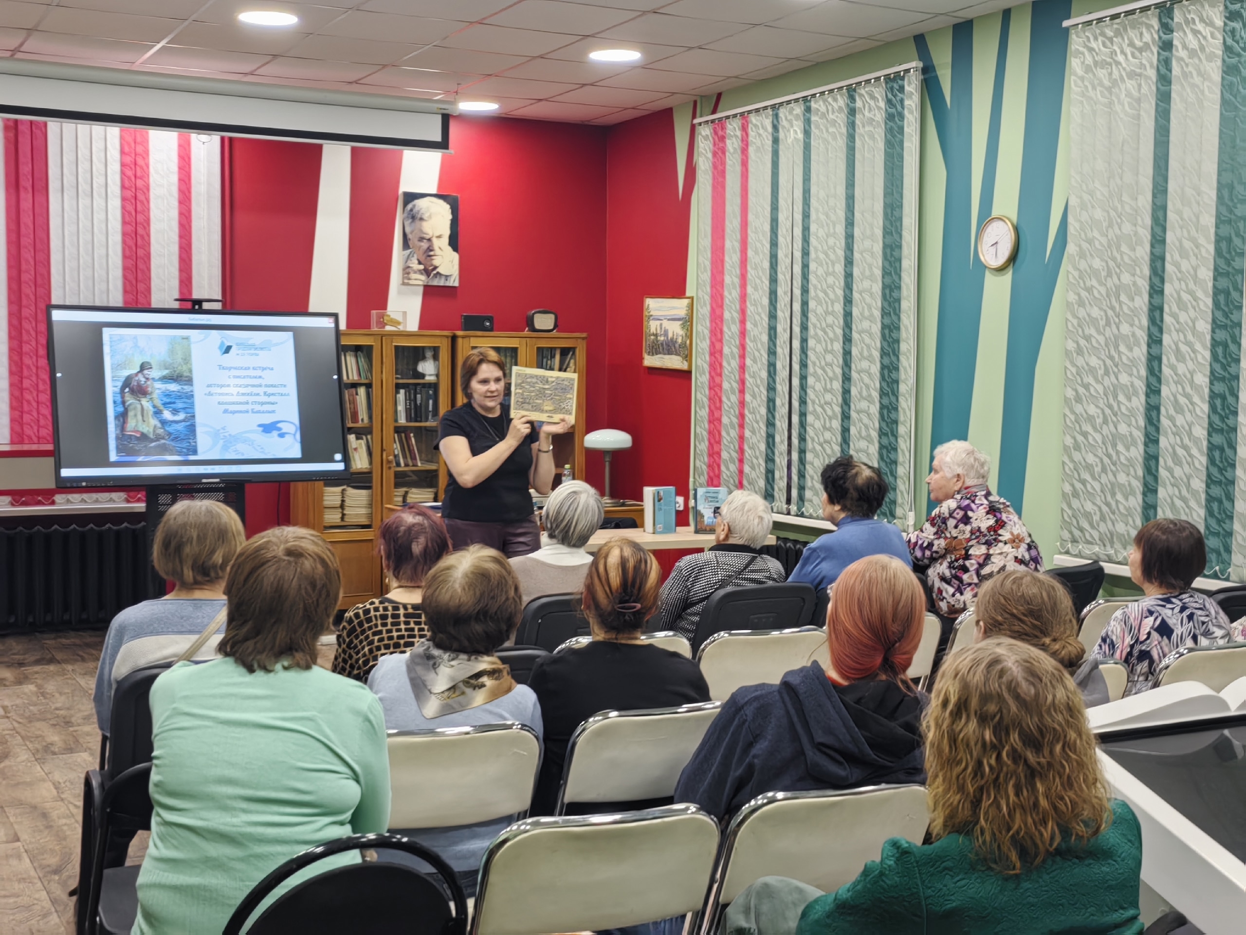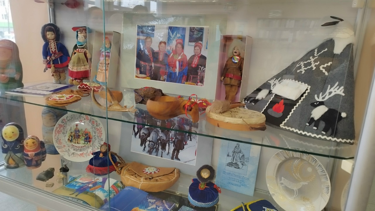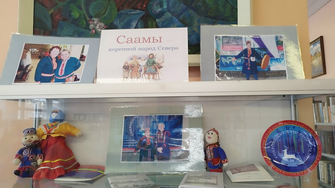 В зале взрослого абонемента библиотекарь Наталья Кузьмина погрузила читателей в литературу, обычаи и традиции народов Севера. Она провела интерактивный обзор выставок, посвящённых саамам и карелам, а также показала видеоролик о шаманской культуре.