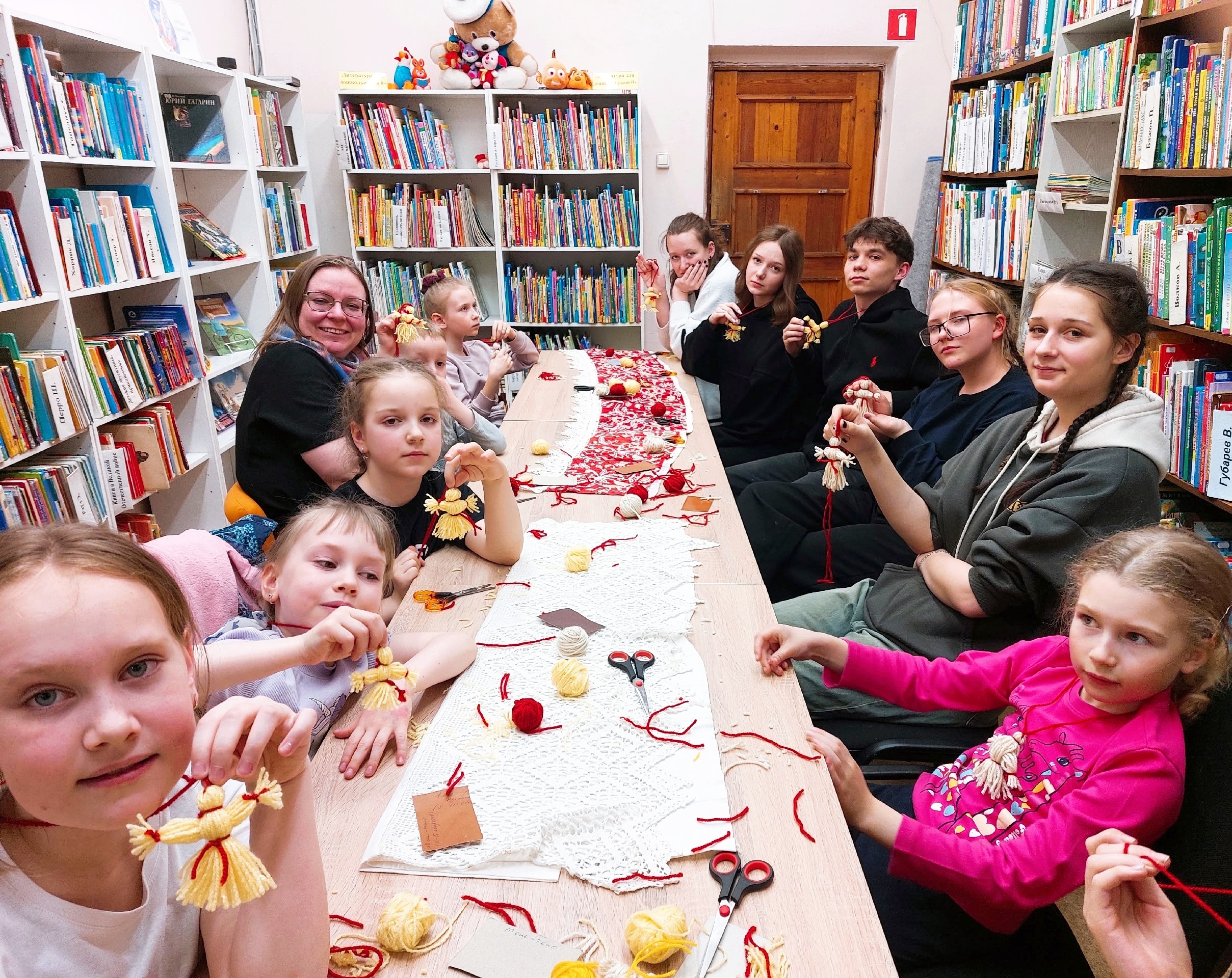 На детском абонементе Валентина Бобрик, сотрудница Библиотеки № 8 МУ «Петрозаводская ЦБС», провела мастер-классы «Её величество Кукла». Участники занятий сделали народных кукол из ниток и забрали их домой на память о необыкновенном вечере.