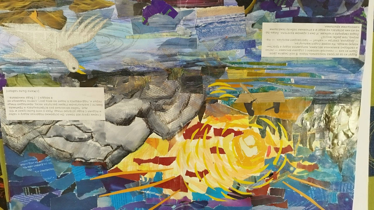 Этот проект удалось осуществить благодаря художнице и дизайнеру Марии Кругловой. Она сама предложила провести цикл мероприятий, чтобы создать коллажную книгу по произведениям Владимира Данилова. Сначала библиотекарь читала детям произведения писателя, а затем Мария с детьми иллюстрировала прочитанное. Отметим, что художница занималась с юными читателями безвозмездно. Коллажную книгу может увидеть любой посетитель библиотеки. Она находится на стенде, посвящённом Владимиру Данилову.