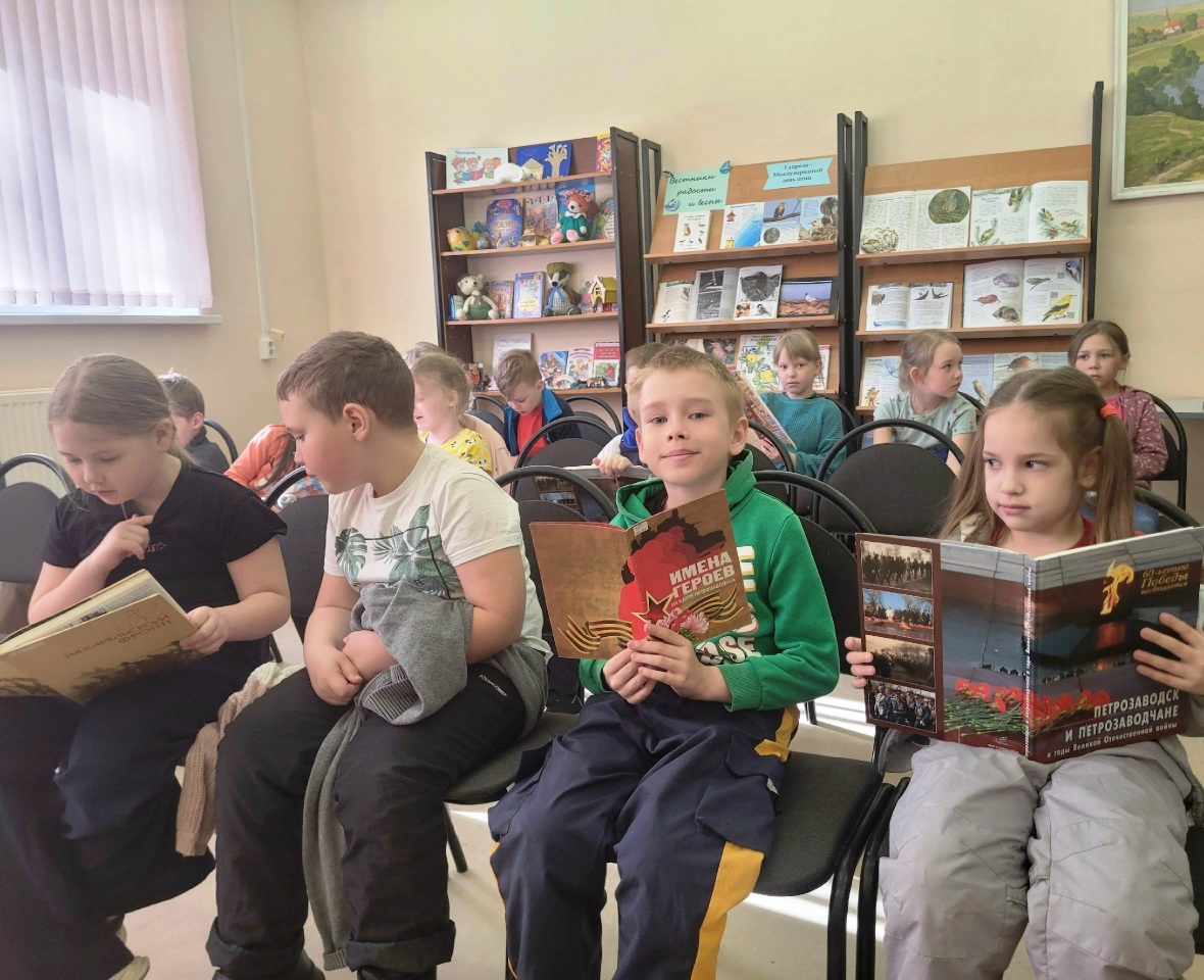 Библиотека № 11 (ул. Нойбранденбургская, 25) провела 6 и 8 апреля для дошкольников и школьников Ключевой три патриотических мероприятия, посвящённых присвоению Петрозаводску почетного звания «Город воинской славы». Занятия посетил 81 ребёнок.