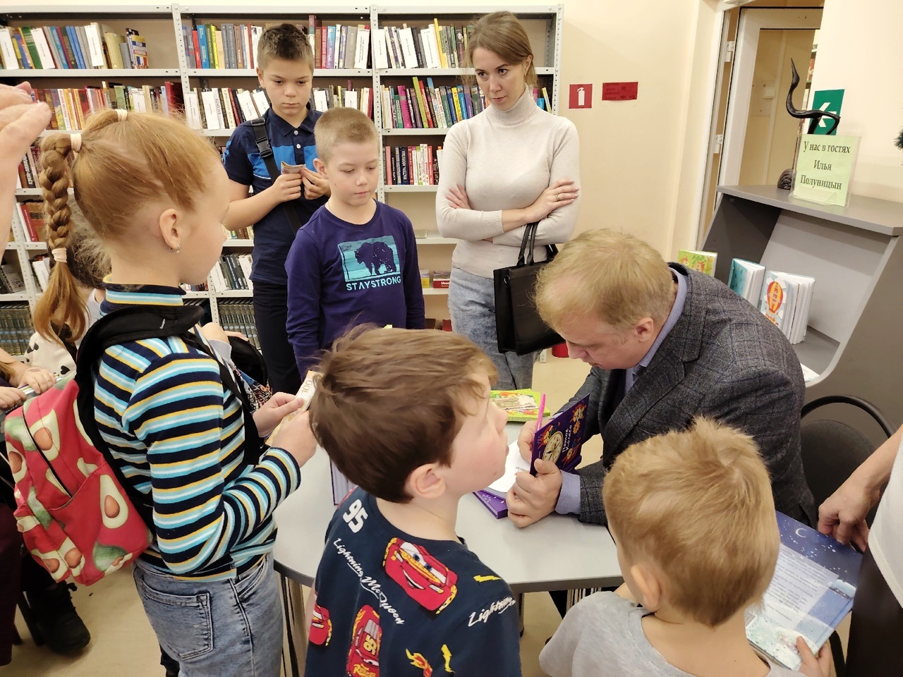 На вопрос ребят, будет ли продолжение про знаменитую четвёрку из Белколесья, писатель ответил утвердительно. Также собравшихся интересовало, будут ли переиздаваться книги, которых уже нет в продаже. Илья Викторович ответил, что переиздание этих книг запланировано. Много разных вопросов задавал писателю любознательный читатель Павел. Накануне встречи с писателем он еле уснул, так как в голове у него была тысяча вопросов к Илье Полуницыну. Например, Павлик спросил, где купить книгу «Шерстяная сказка», а ещё он поделился впечатлениями о прочитанных книгах.