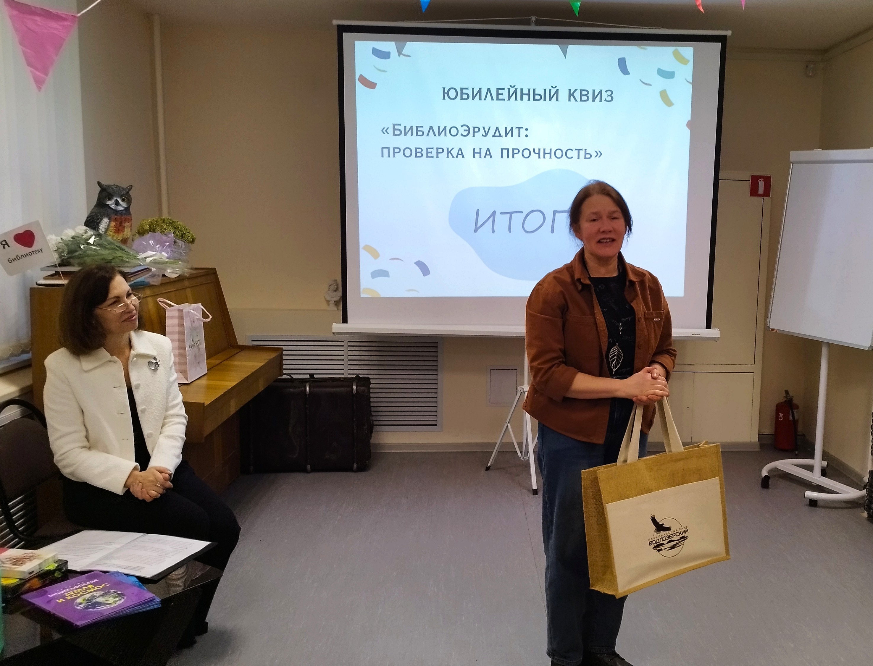 Кстати, именно эта дружная команда, в составе которой была также заведующий Библиотекой № 11 Елена Минина, стала победителем интересного квиза «БиблиоЭрудит: проверка на прочность», который для всех гостей провела Жанна Семёнова, главный библиотекарь ЦГДБ им. В. М. Данилова.