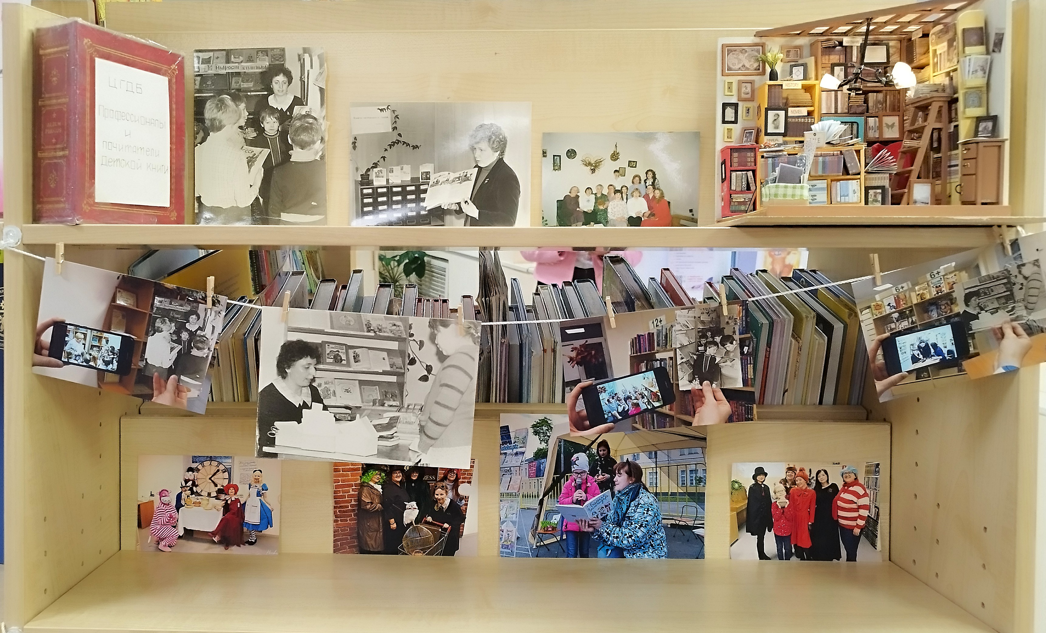 Центральное место на нём занимал стенд с благодарственными письмами в адрес коллектива ЦГДБ им. В. М. Данилова и архивными фотографиями. Мы бережно храним снимки людей, которые работали в библиотеке, и всегда с благодарностью их вспоминаем.