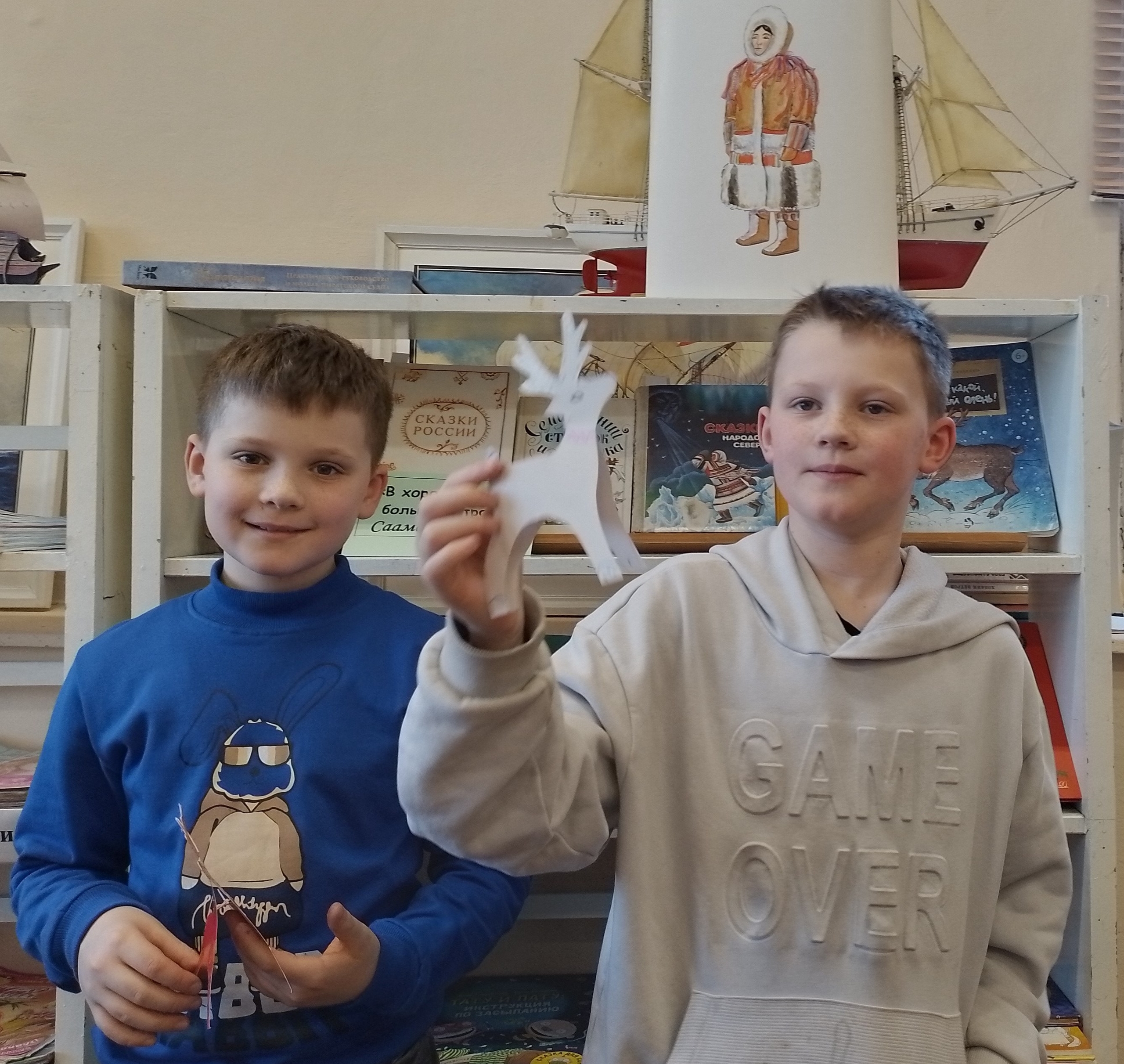 Под общим названием «В хороводе сказок большой страны» прошло ещё две встречи. На первой состоялось знакомство с саамскими сказками в читательском клубе «Мастерская радости», когда не только читали, но и делали своими руками поделку – «волшебного оленя». А воспитанники МДОУ «Детский сад № 104» узнали о сказках народов Центральной России.