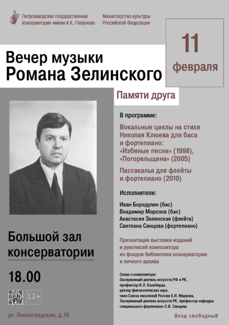 Приглашаем на виртуальный литературно-музыкальный вечер, посвященный памяти карельского композитора Романа Федоровича Зелинского. Вечер проходит в рамках лектория «Музыкальные встречи».