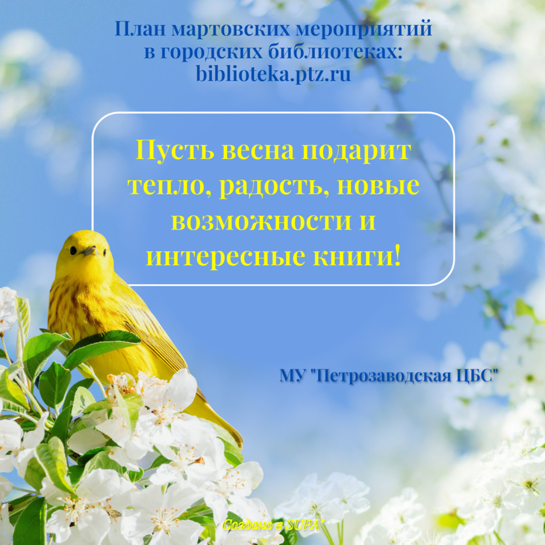 22 марта в 14:00 в зале мероприятий Библиотеки им. Н. Клюева (ул. Ровио, д. 17/2), в рамках читательского клуба любителей искусства «ЛИК», состоится литературно-музыкальный вечер с педагогами и учениками Детской музыкальной школы имени Г.В. Свиридова.