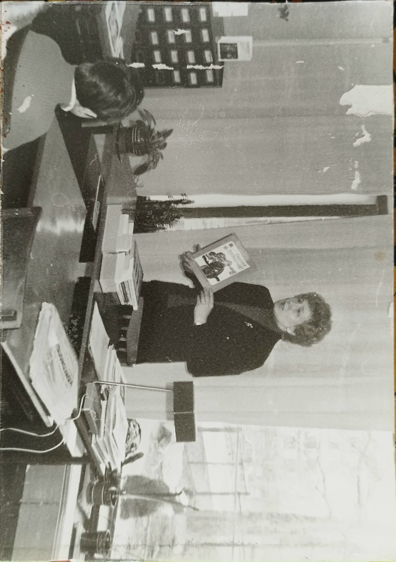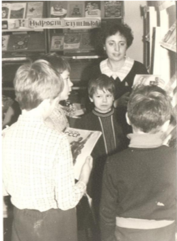 «В то время наша библиотека занимала весь цокольный этаж дома на ул. Л. Чайкиной, 9. Там было два больших читальных зала, огромный абонемент, на котором было представлено три кафедры. Когда я пришла туда, на младшем абонементе работала Наталья Викторовна Иванова, на старшем – Ирина Николаевна Ерегина, а мне доверили средний абонемент – учеников 4-5-х классов, – сказала Марина Игоревна. – В читальном зале работала самый опытный сотрудник Тамара Петровна Кулицкая. У нас была взаимозаменяемость. Наша работа заключалась не только в книговыдаче детям на абонементе. Большую роль играло сотрудничество с детскими учреждениями. Практически ежедневно все мы выходили в какую-то организацию. Иногда проводили в школах по пять уроков подряд в разных классах».