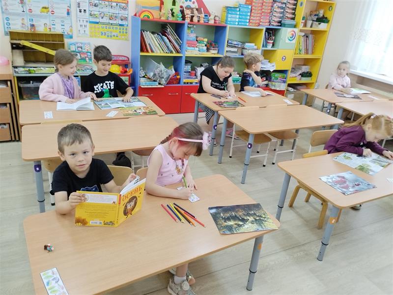 Про осень и осеннюю пору написано немало сказок и рассказов. Осенью природа необыкновенно красива. Лес окрашивается в золотой, багряный, лиловый и жёлтый цвета, поспевают плоды, наливаются соком ягоды. На занятии ребята знакомились с осенними сказками, отгадывали загадки на эту тему и даже выполнили физкультминутку под названием «Ветер».