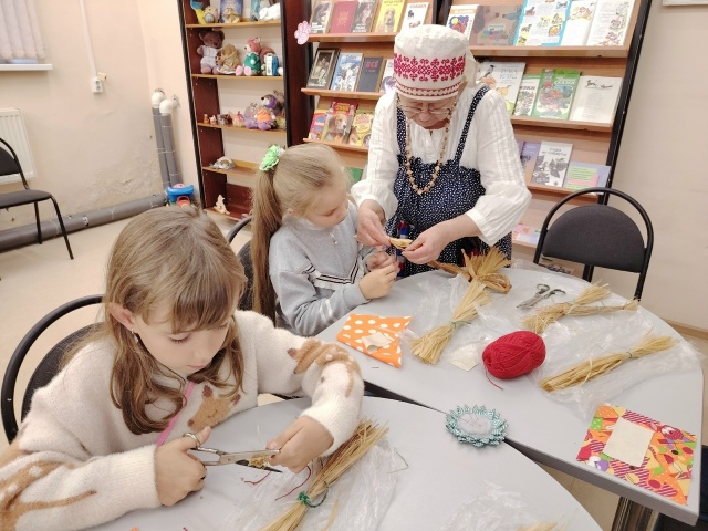 Татьяна Максимовна сюда приходит не только как читательница. По воскресеньям раз в месяц она проводит мастер-класс из цикла «Календарь народной куклы» по книге Дмитрия Москина и Татьяны Яшковой «Загадка народной куклы».