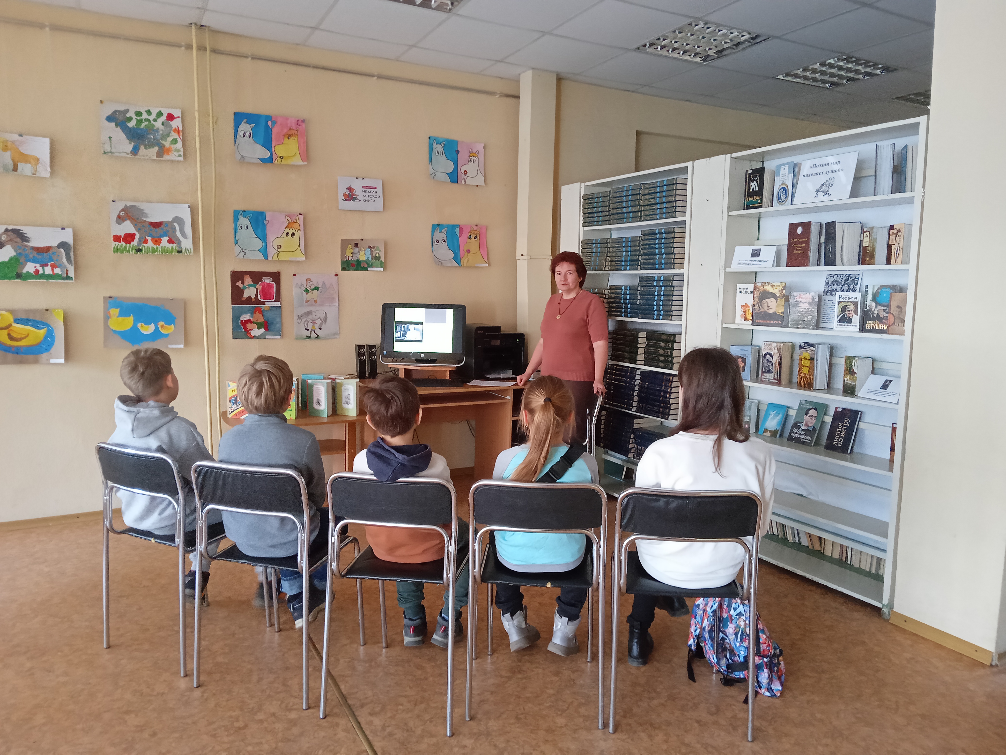 С 29 марта в зале для мероприятий работает выставка творческих работ участников студии «Рисовать легко!» под руководством Людмилы Мальковой. В экспозиции, приуроченной к Неделе детской книги, представлены рисунки юных талантливых художников по мотивам книг-лауреатов премии Г. Х. Андерсена. Посетители библиотеки до 10 апреля включительно могут посмотреть на изображения любимых героев, например, Лошадку и Козлёнка из стихотворений Агнии Барто, Карлсона, который живёт на крыше и обожает варенье, Муми-маму и Муми-папу и их друзей.