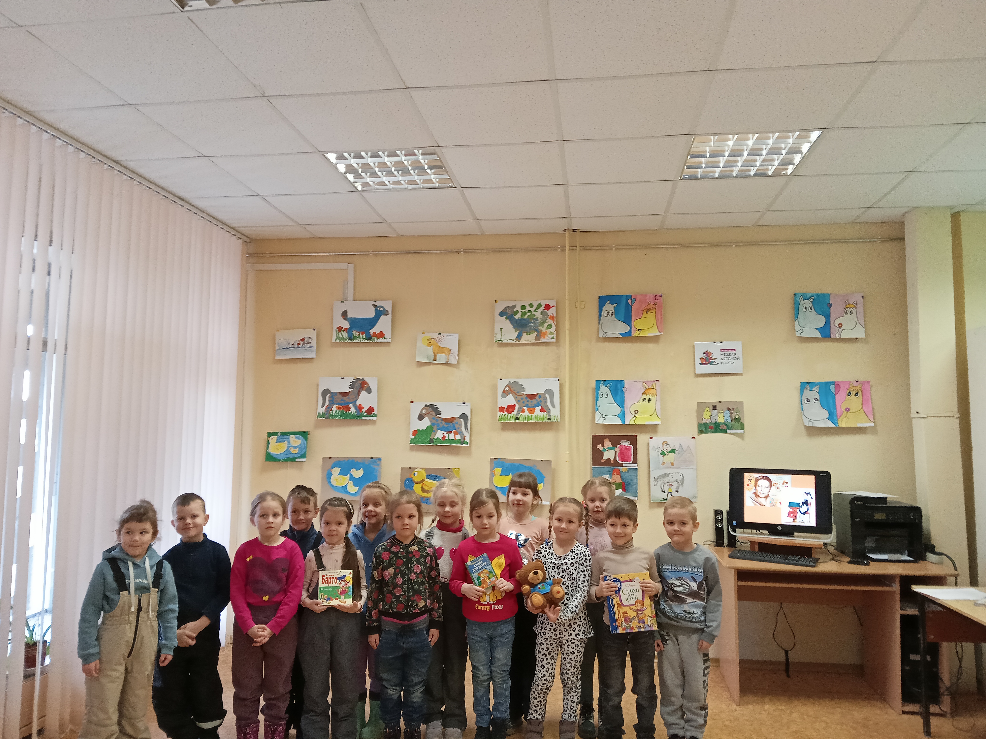 30 марта для детей старшей группы детского сада № 95 "Родничок" и читателей библиотеки прошёл литературный час "Страна весёлого детства Агнии Барто". Ребята познакомились с биографией Агнии Барто. Вспомнили и прочитали наизусть известные стихи из сборника «Игрушки»