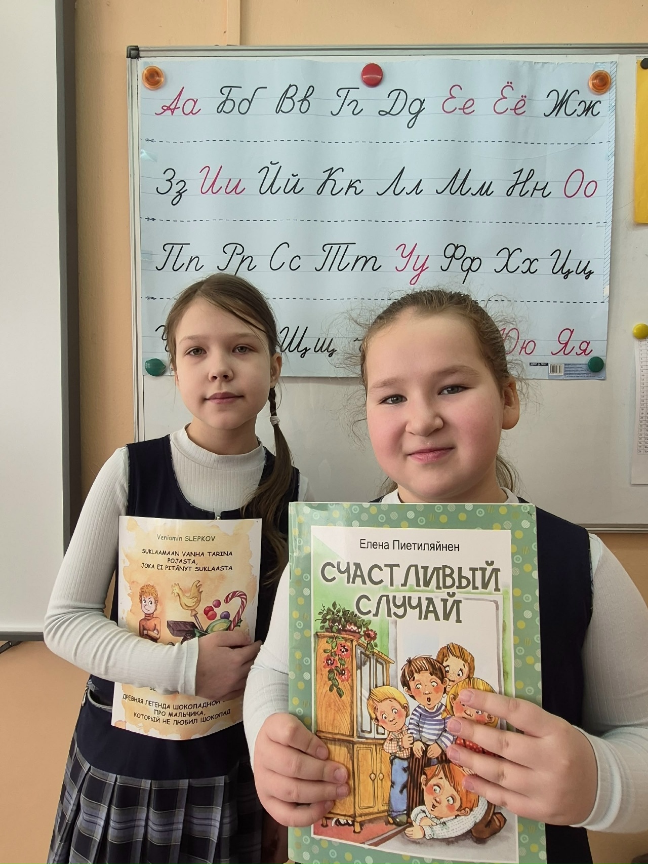 Произведения для детей любимых писателей Ирины Никитиной и Владимира Степанова прозвучали в этот день в средней школе № 27 для учеников 3 "Б" и 3 "В" классов в исполнении студенток Карельского колледжа культуры и искусств им. Героя Советского Союза Анны Лисицыной.