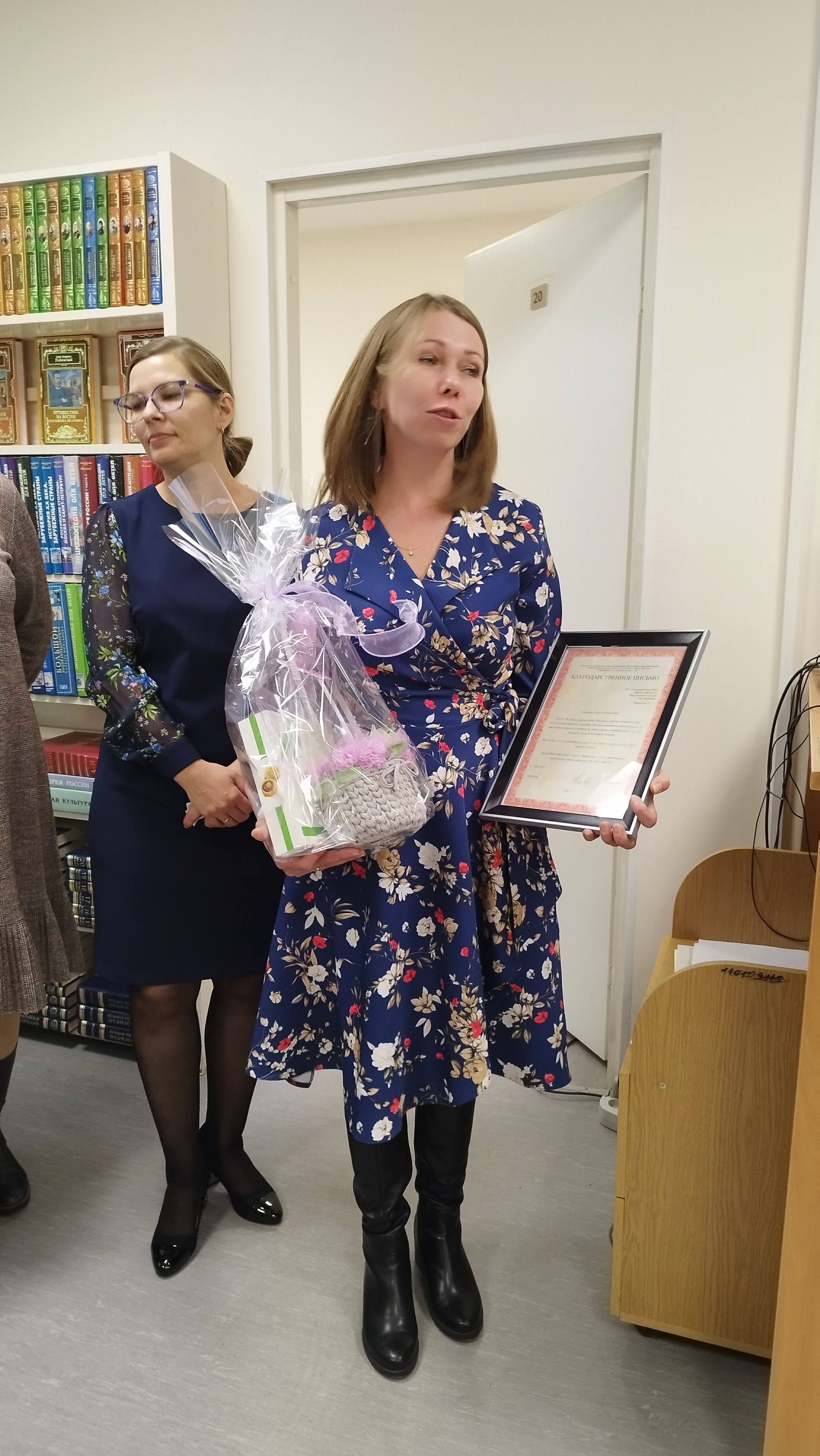На торжественный вечер, который по случаю юбилеев двух городских библиотек организовала МУ "Петрозаводская ЦБС", от детского сада № 7 "Ауринко" пришла поздравить любимую библиотеку старший воспитатель Мельникова Инна Владимировна.