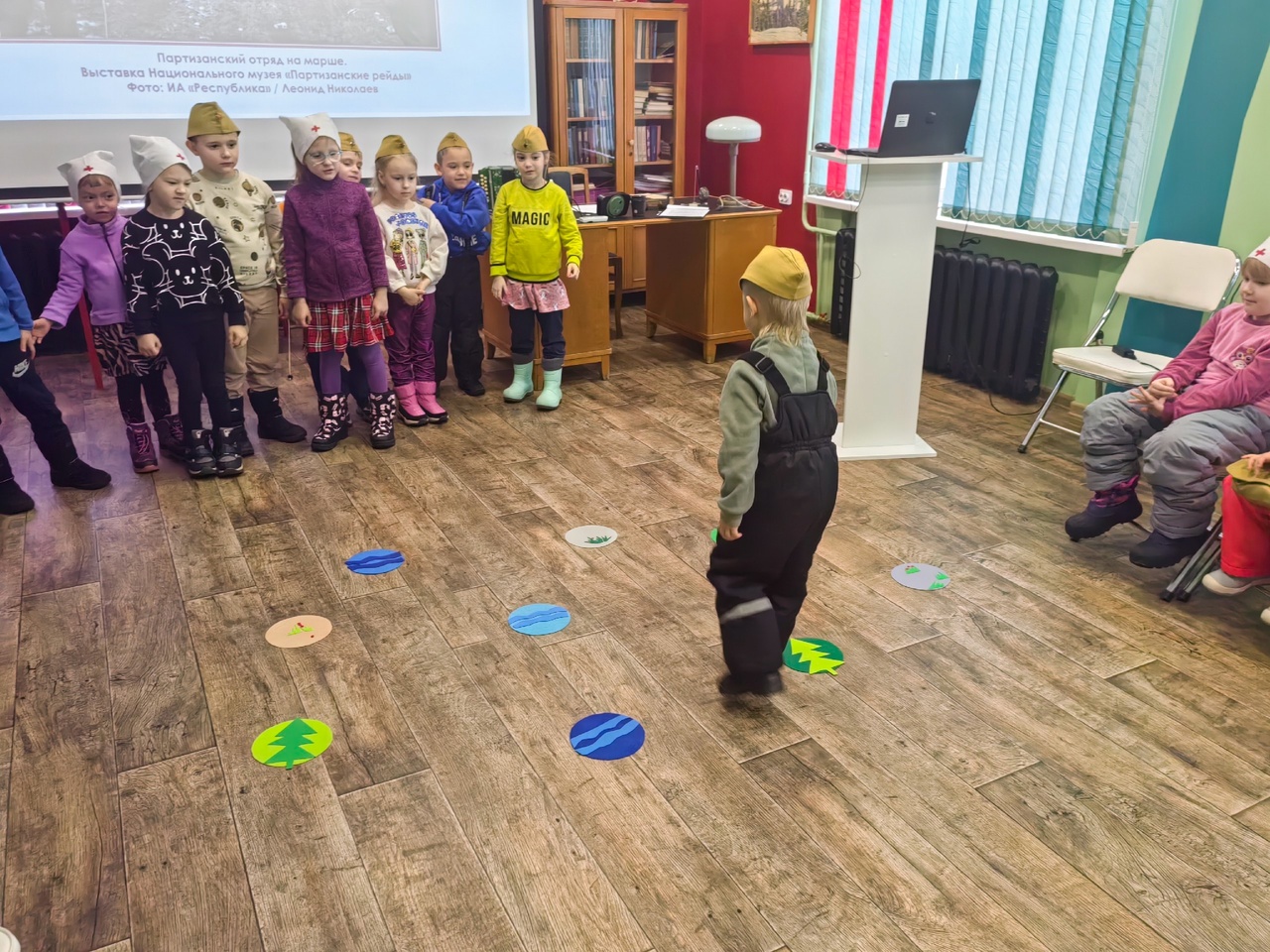 Из повести участники узнают, что во время Великой Отечественной войны баян помогал партизанам пережить тяготы военной жизни. Во время привала ребята знакомятся с историей музыкального инструмента, слушают, как звучит баян, а также пробуют себя в роли баянистов. На привале участникам предлагается решить важные задачи: как обнаружить шпиона в партизанском отряде? Как захватить грузовик у противника? Эти задачи была опубликованы в журнале «Мурзилка» за 1944 год. В фонде ЦГБ им. Д. Я. Гусарова этот журнал пользуется популярностью среди маленьких читателей. Большой интерес у ребят вызывает книжная выставка, на которой представлены книги о Великой Отечественной войне и энциклопедии по военной технике.
