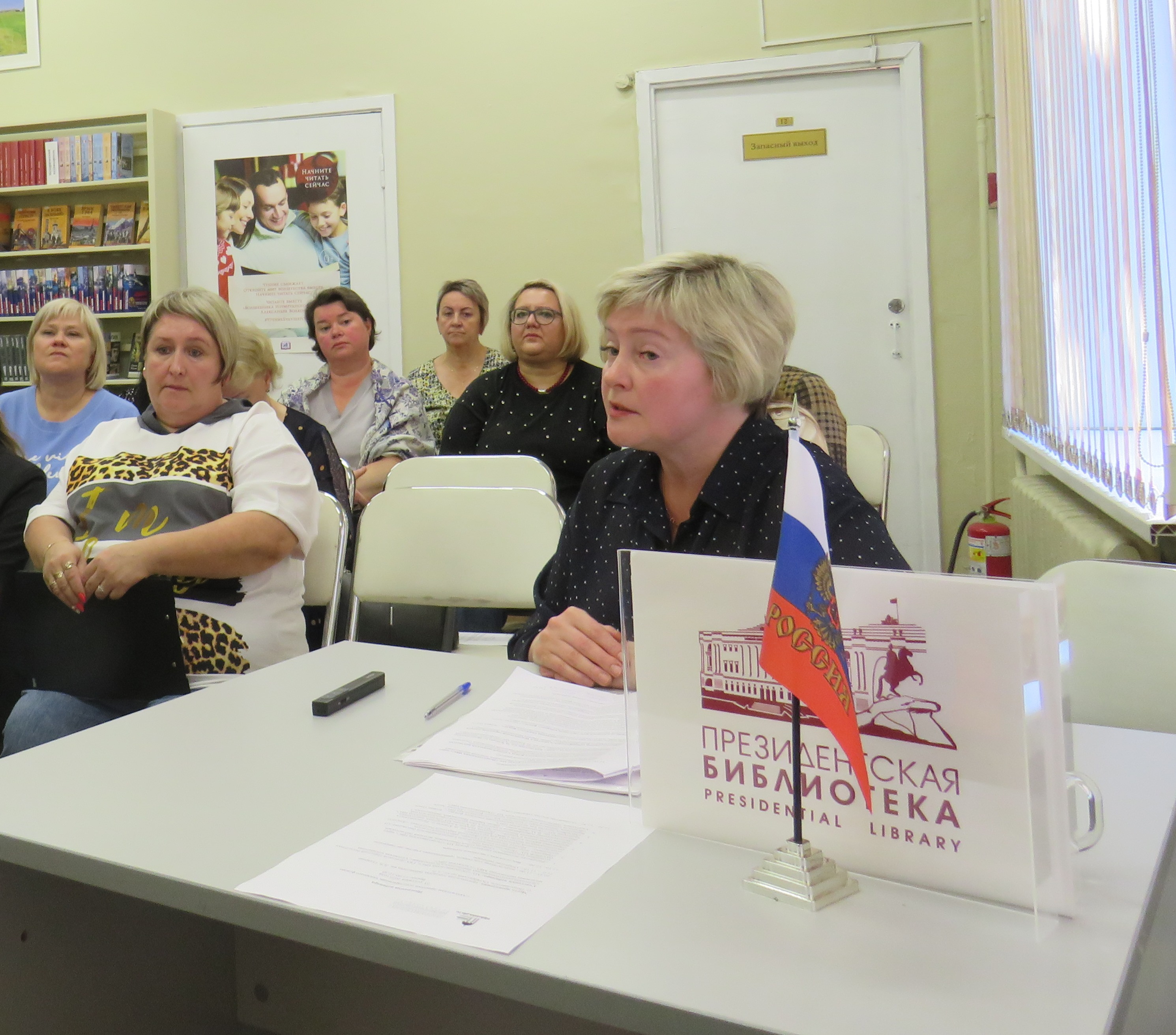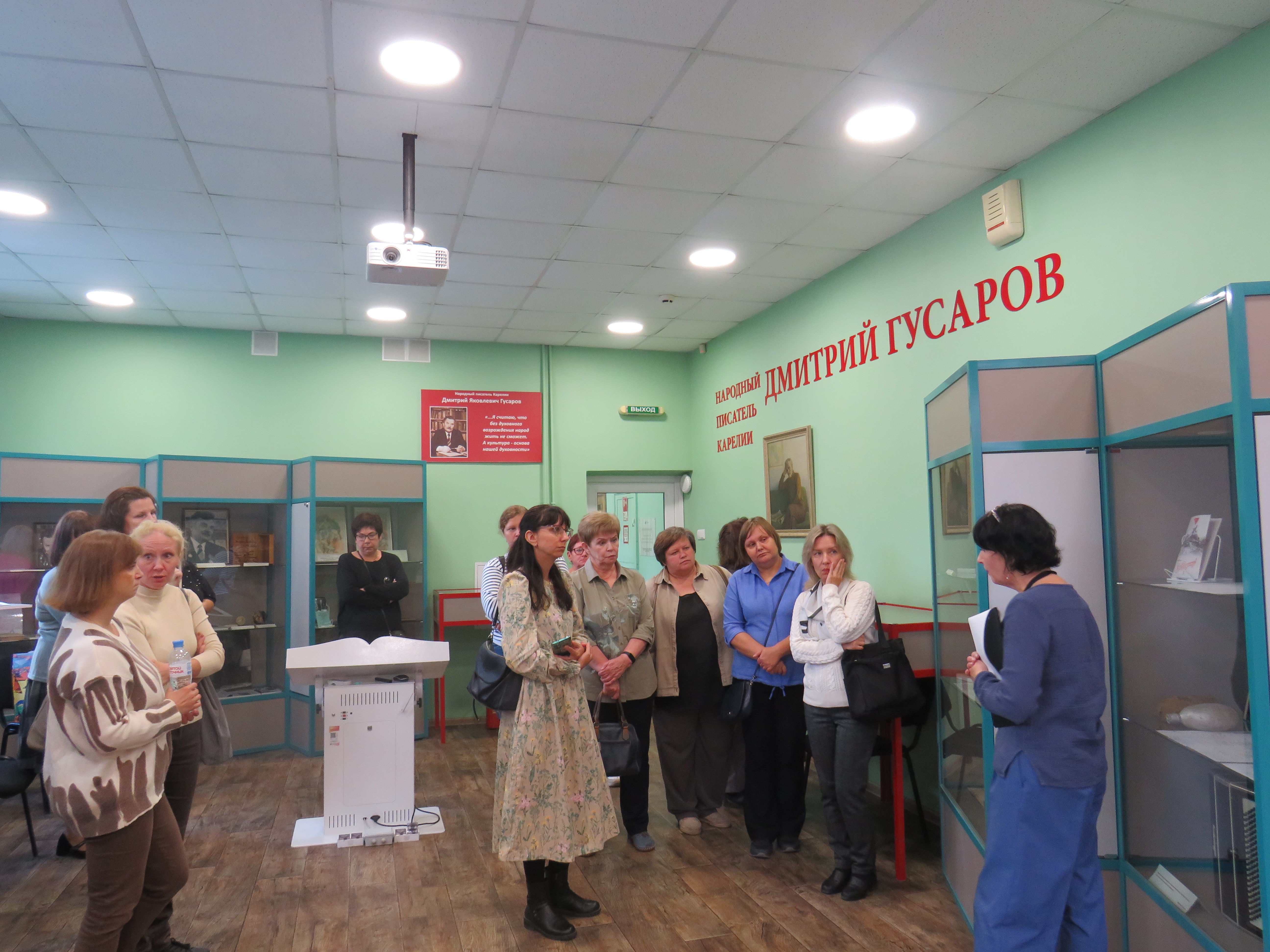 Ольга Борисовна поделилась с коллегами информацией о создании в библиотеке музейной комнаты «Жизнь и творчество народного писателя Карелии Дмитрия Гусарова".