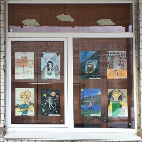 Чтобы привлечь горожан, библиотека использует окна как выставочное пространство. Выставки в окнах стали визитной карточкой городских библиотек. К каждой экспозиции готовится книжная выставка в стенах библиотеки. Оконная выставка работает круглосуточно, что удобно читателям. Такая “витрина” тоже позволяет раскрывать и популяризировать фонд библиотеки.