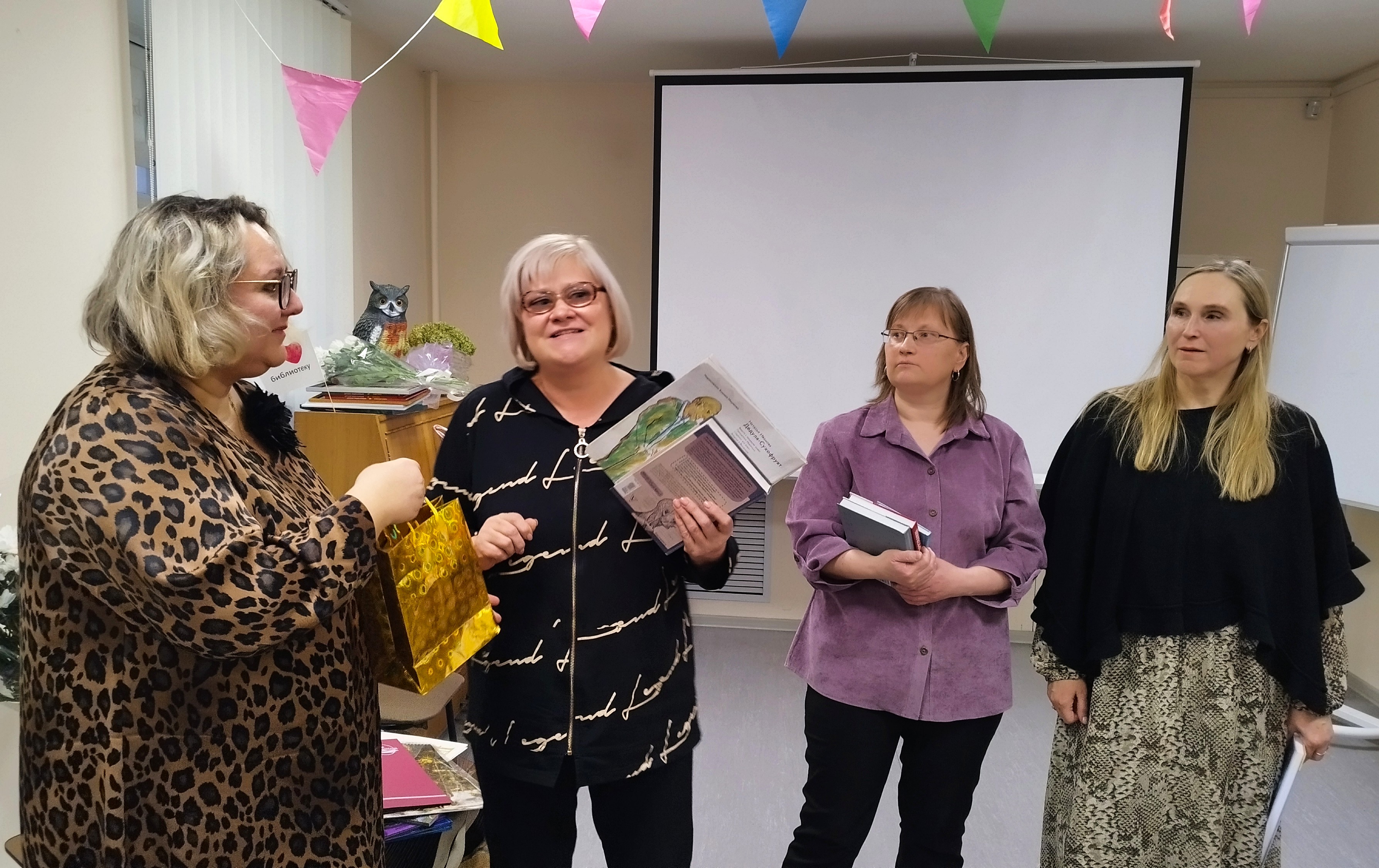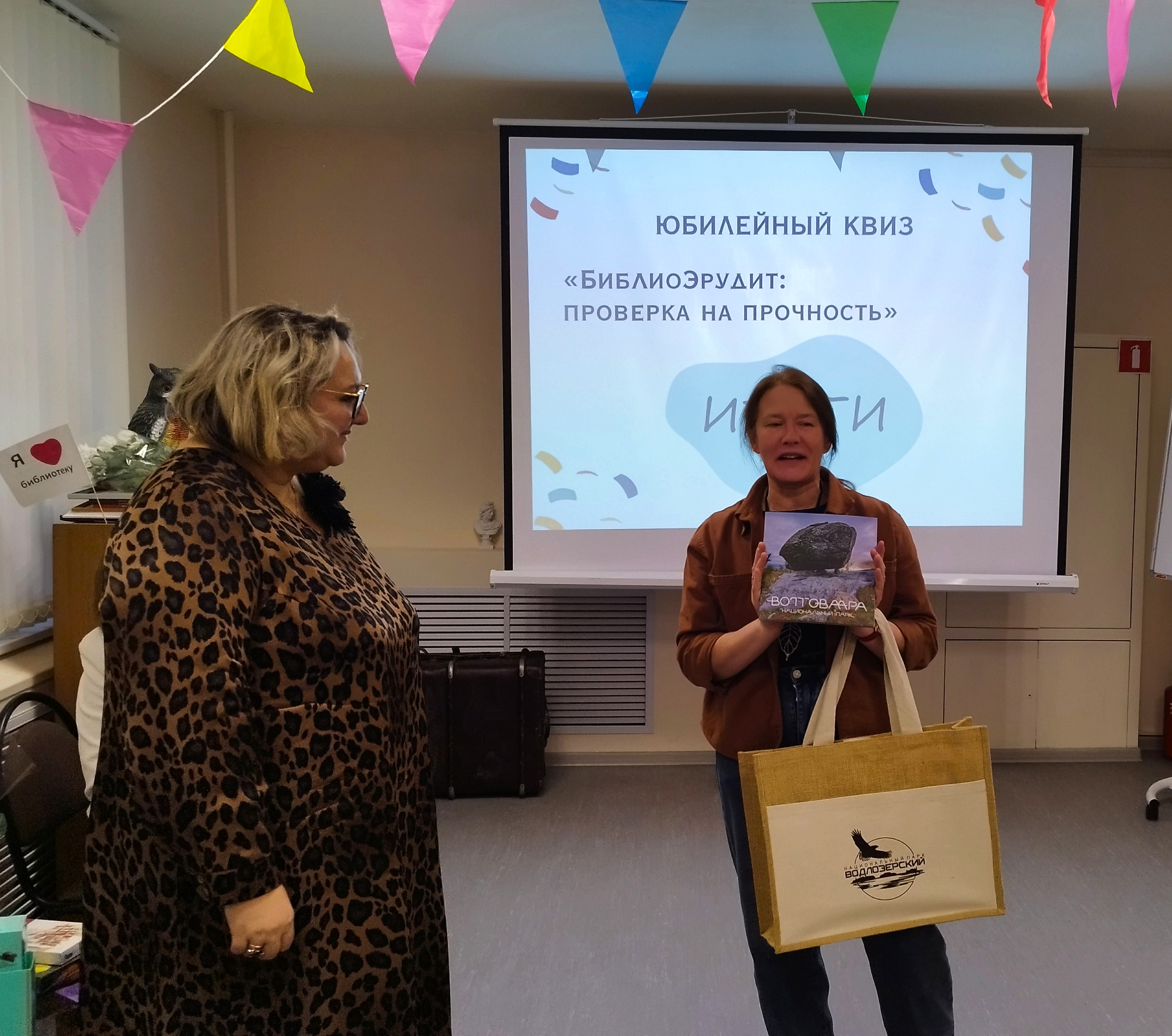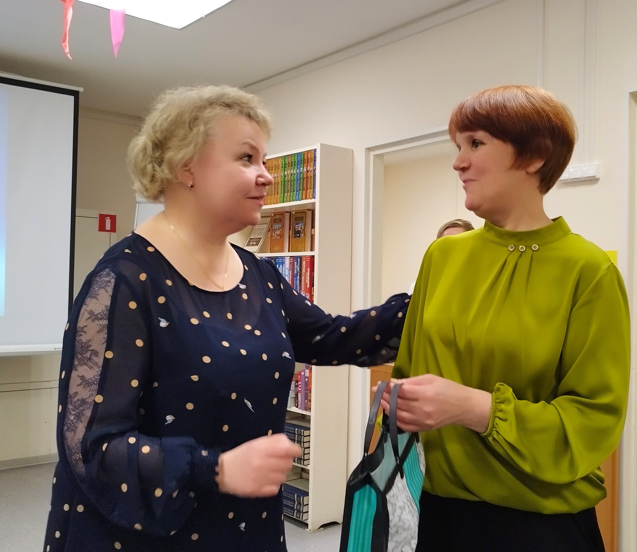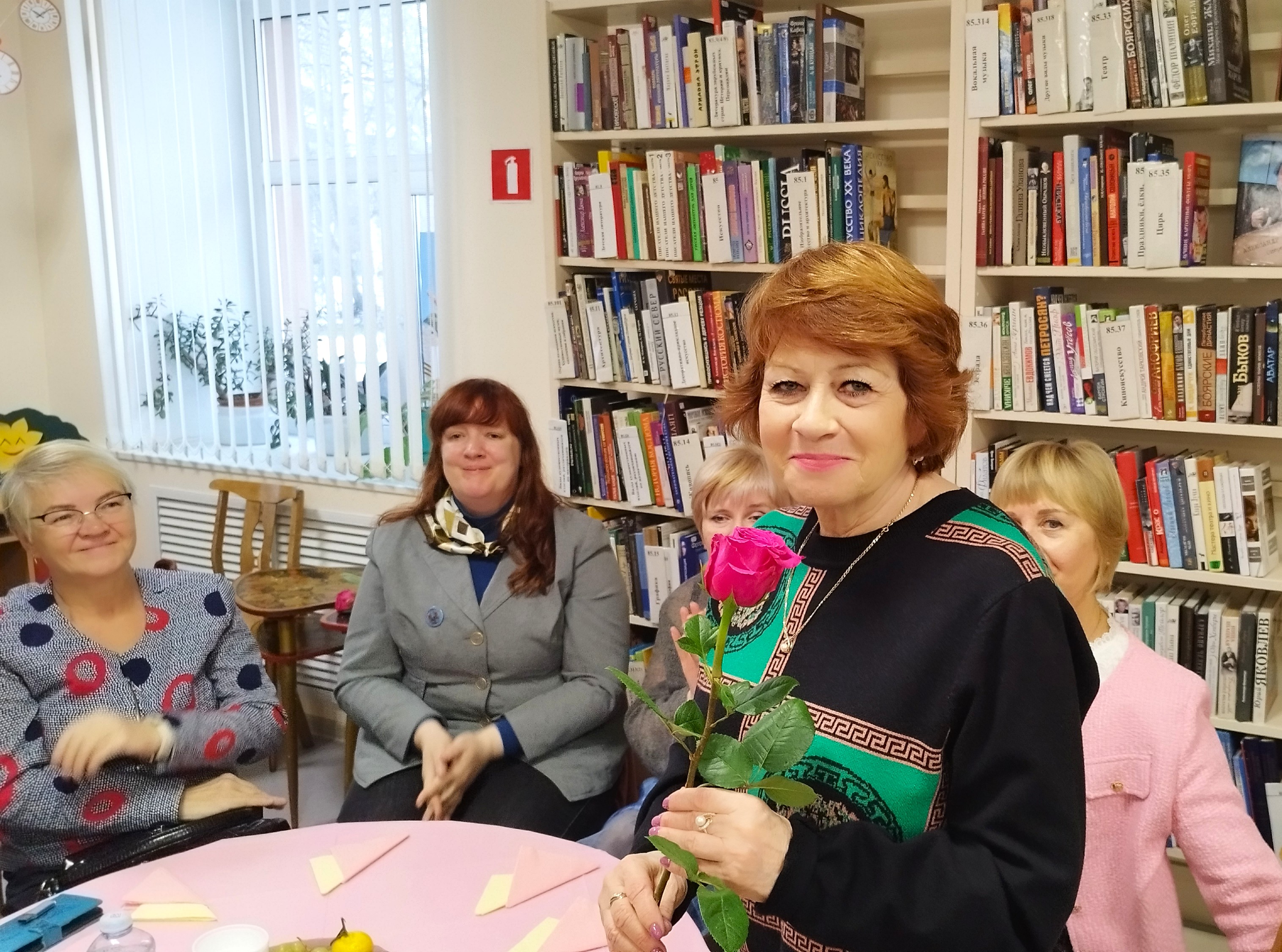 Мы были рады в такой важный день встрече с Маргаритой Куликовой, главным методистом отдела организации и методики библиотечной работы Национальной библиотеки Республики Карелия. Она поздравила юбиляров и вручила от имени Национальной библиотеки РК и Библиотечной ассоциации РК подарки.