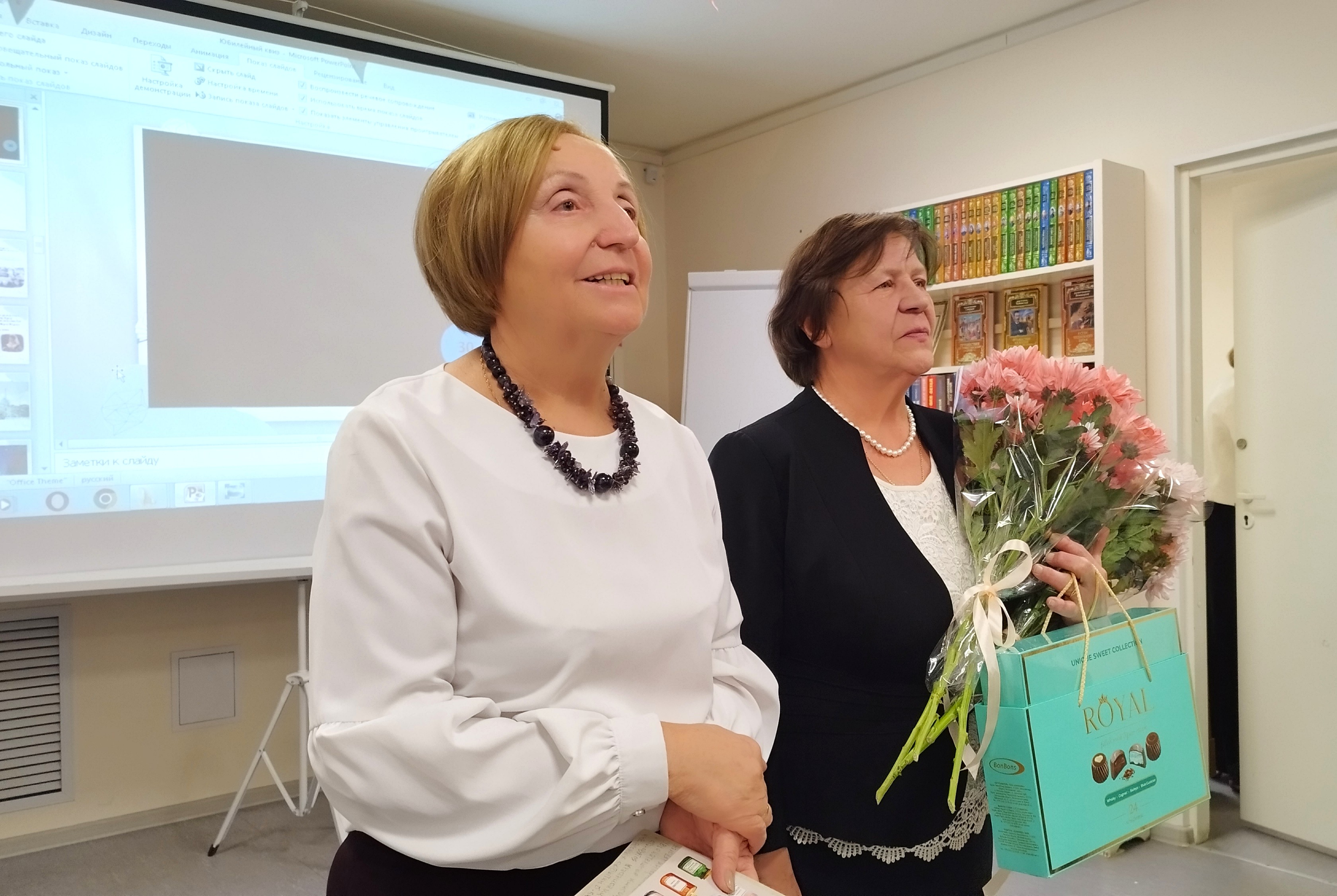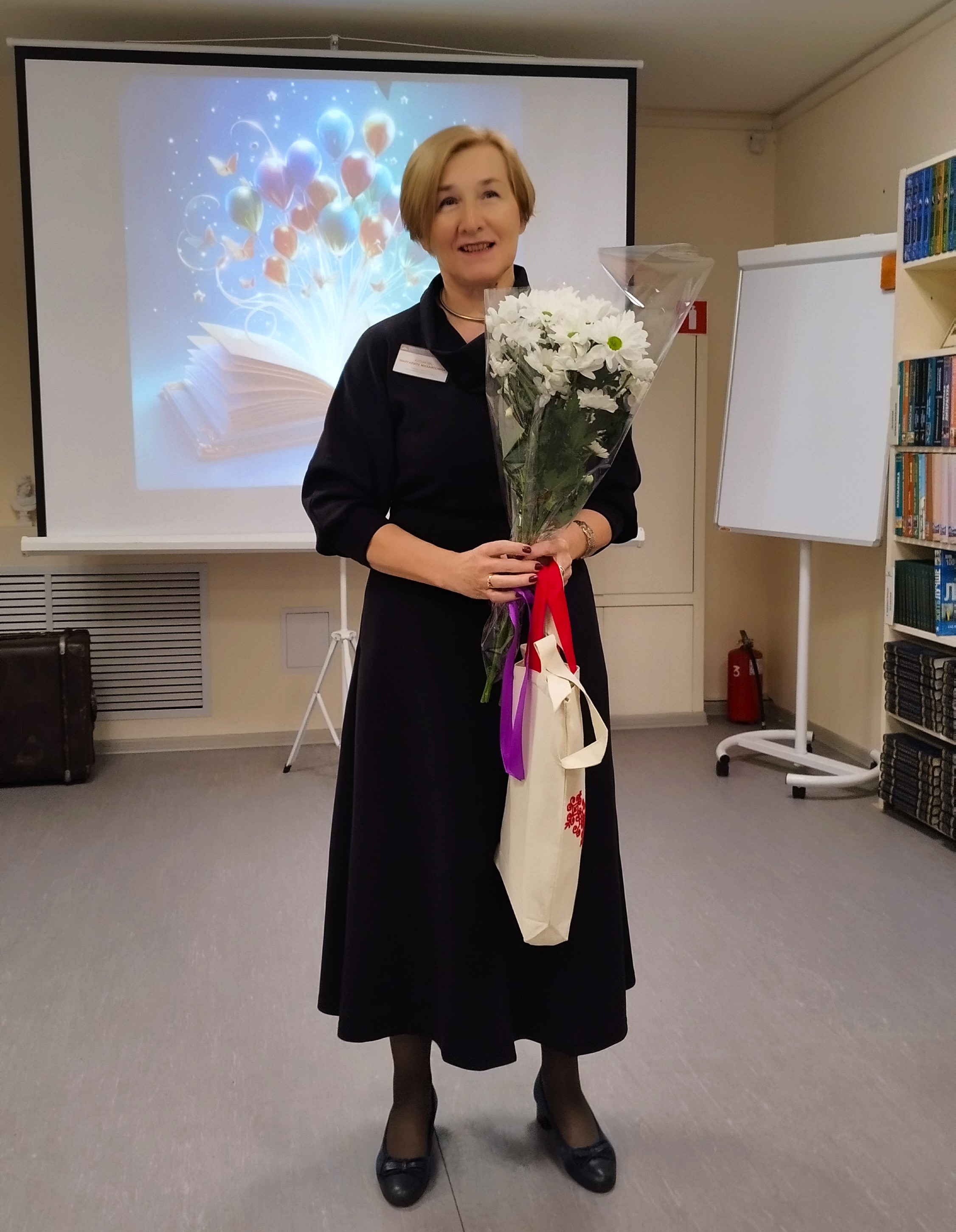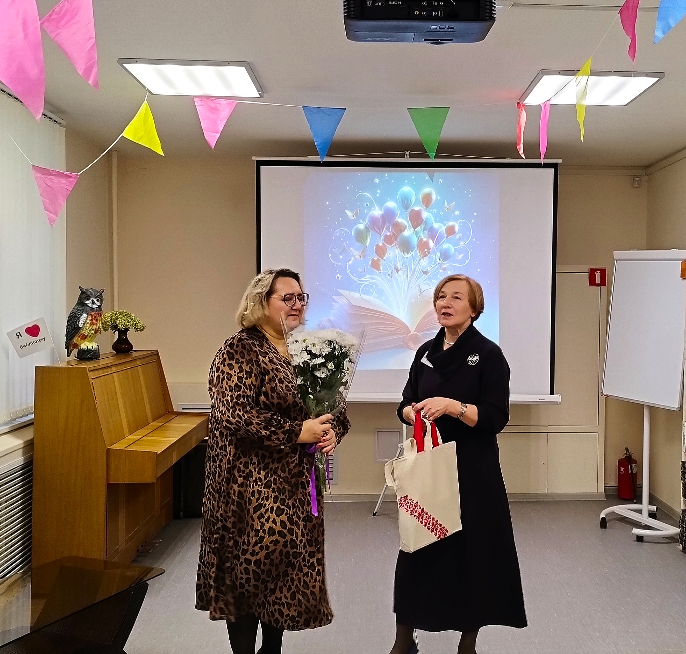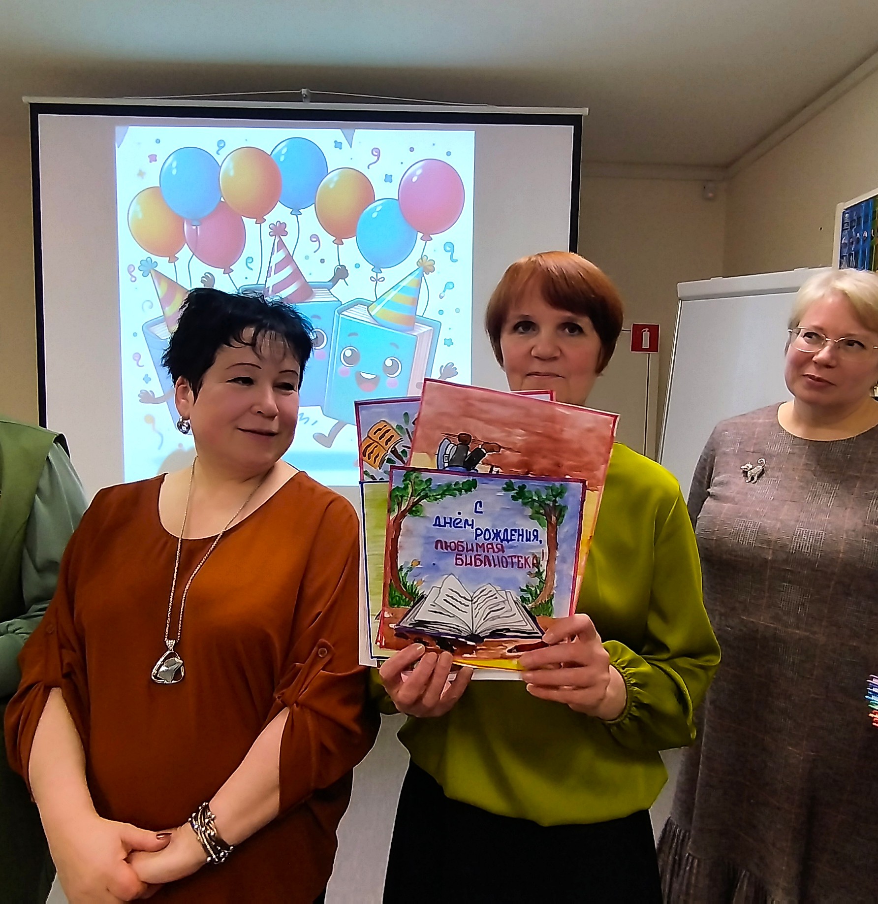 Мы были рады в такой важный день встрече с Маргаритой Куликовой, главным методистом отдела организации и методики библиотечной работы Национальной библиотеки Республики Карелия. Она поздравила юбиляров и вручила от имени Национальной библиотеки РК и Библиотечной ассоциации РК подарки.