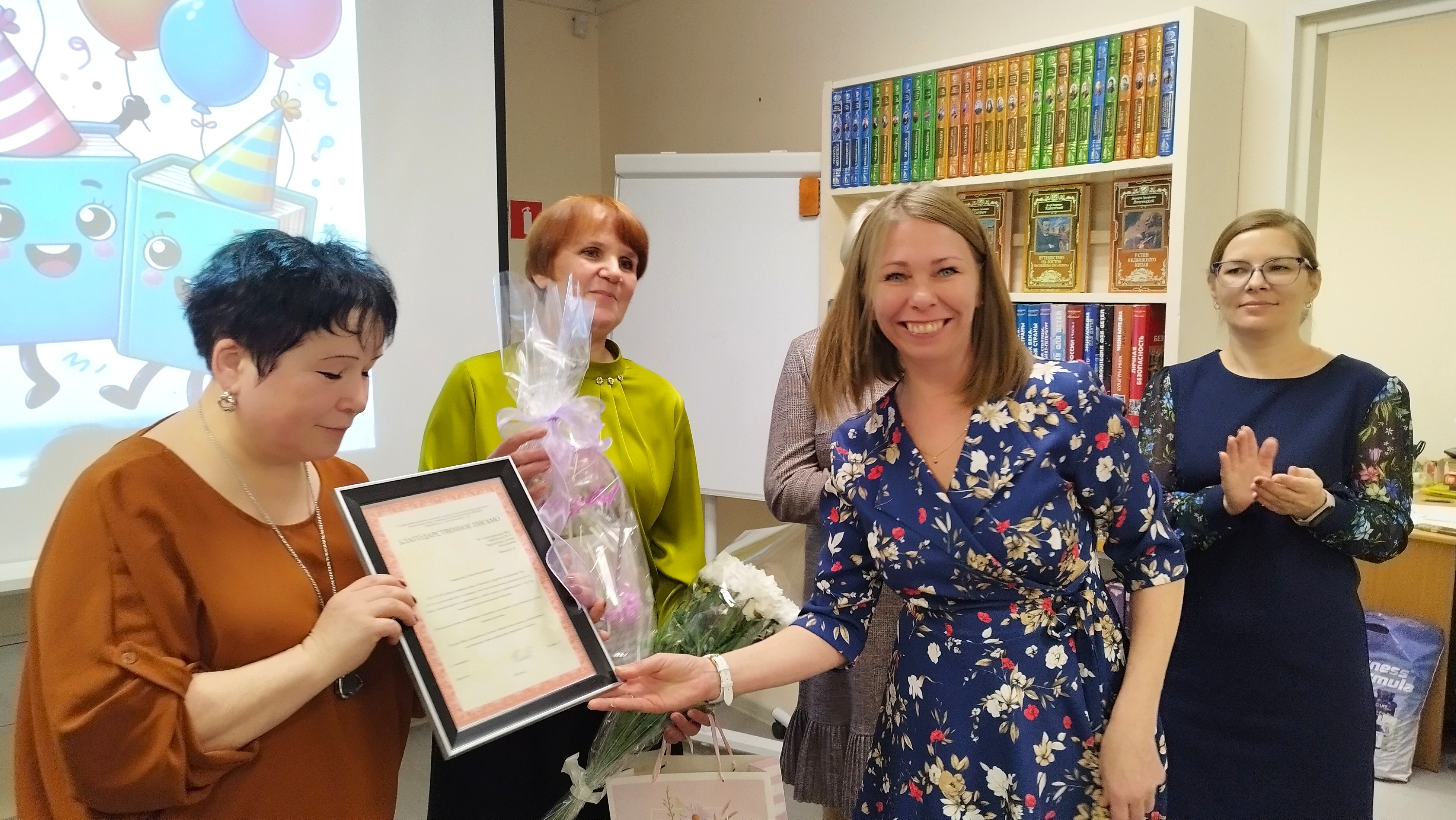 Слова признательности за труд и верность профессии прозвучали и в адрес сотрудников главной городской детской библиотеки. Екатерина Реутова передала Марине Александровне Лукиной, заведующему библиотекой, благодарственное письмо коллективу ЦГДБ им. В. М. Данилова.