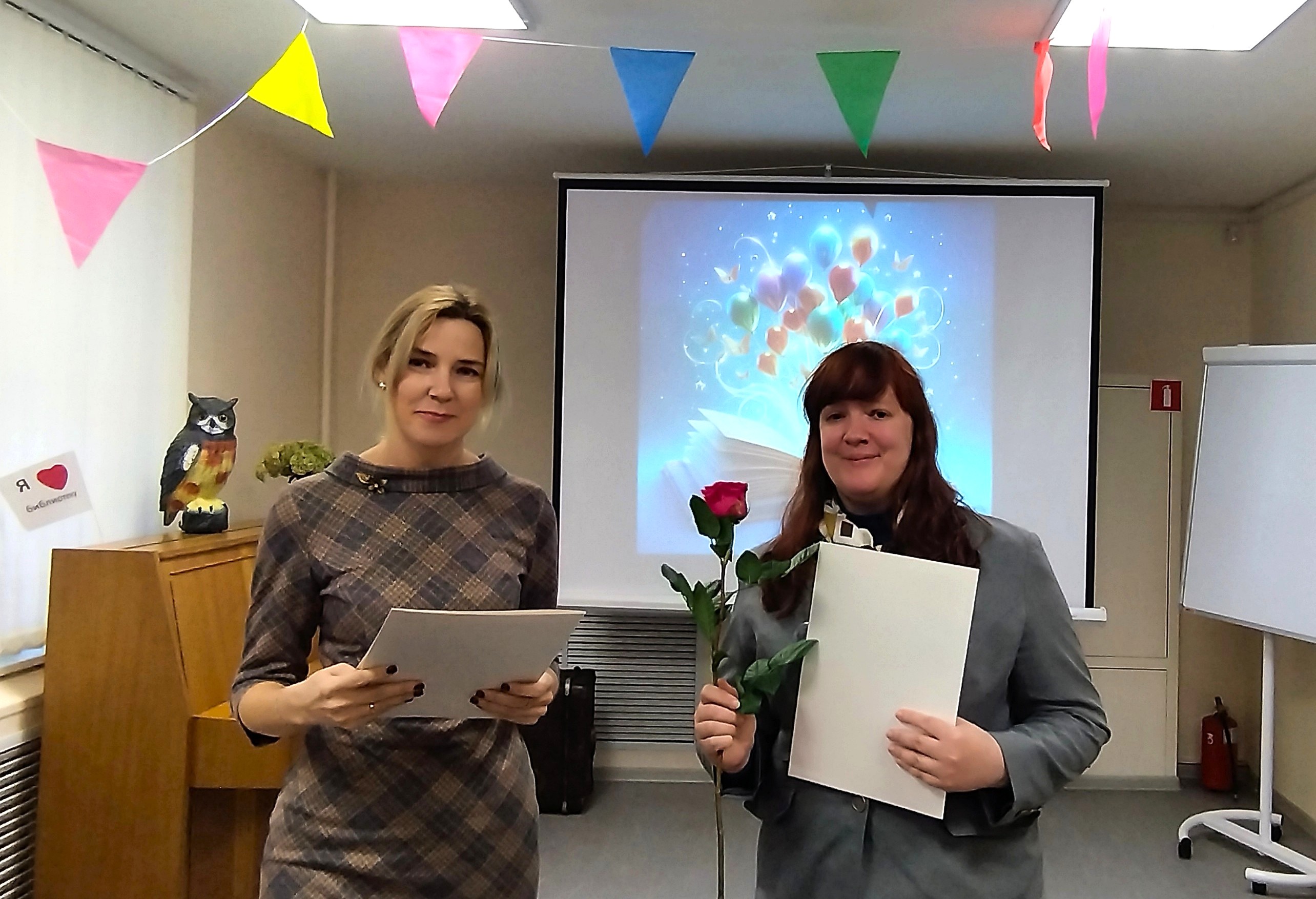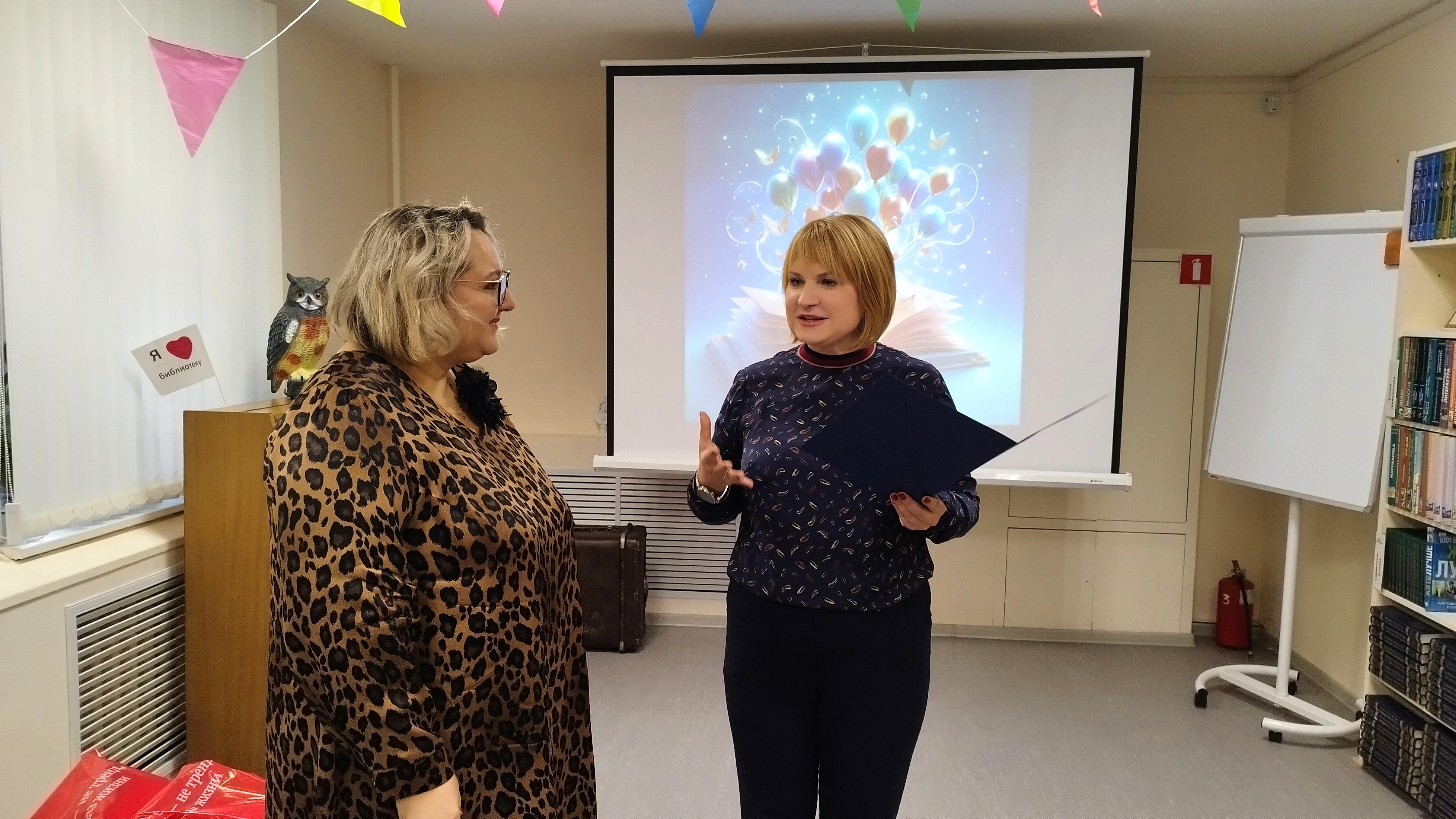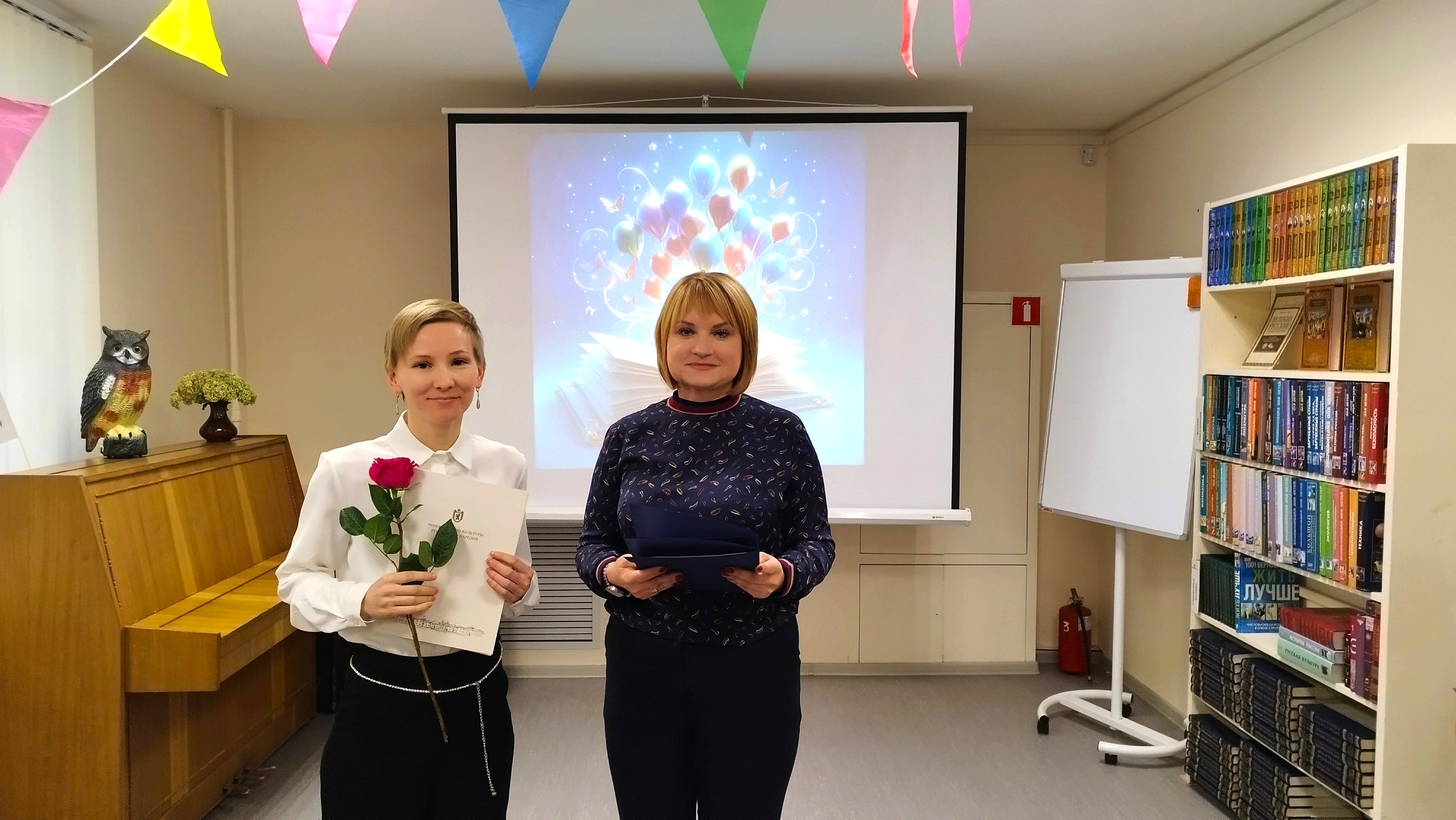 От городского управления культуры Наталья Берегова вручила благодарственные письма за высокий профессионализм и активную деятельность, направленную на развитие библиотечного обслуживания детей, Анастасии Александровне Строж и Марине Николаевне Шиян, библиотекарям ЦГДБ им. В. М. Данилова.