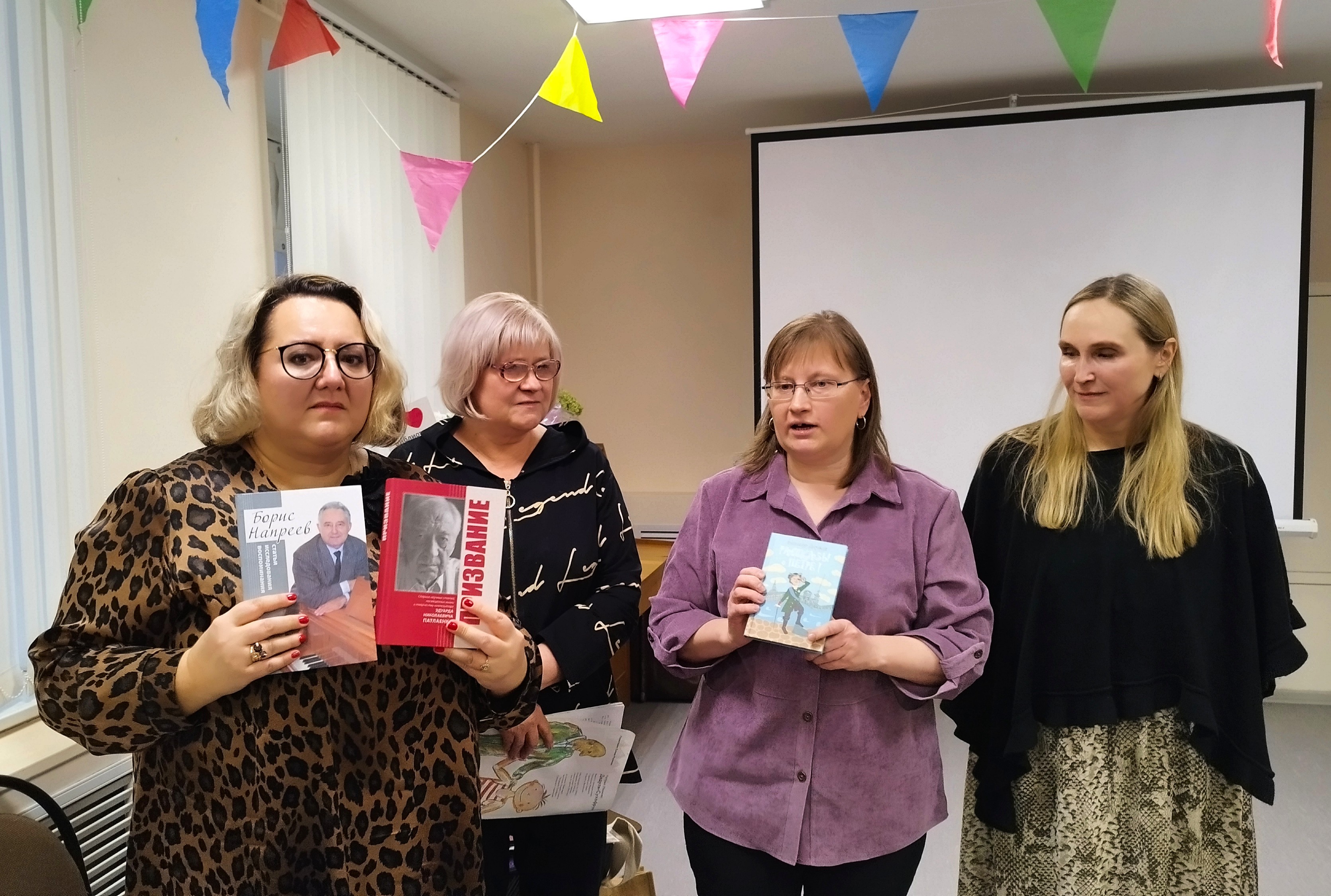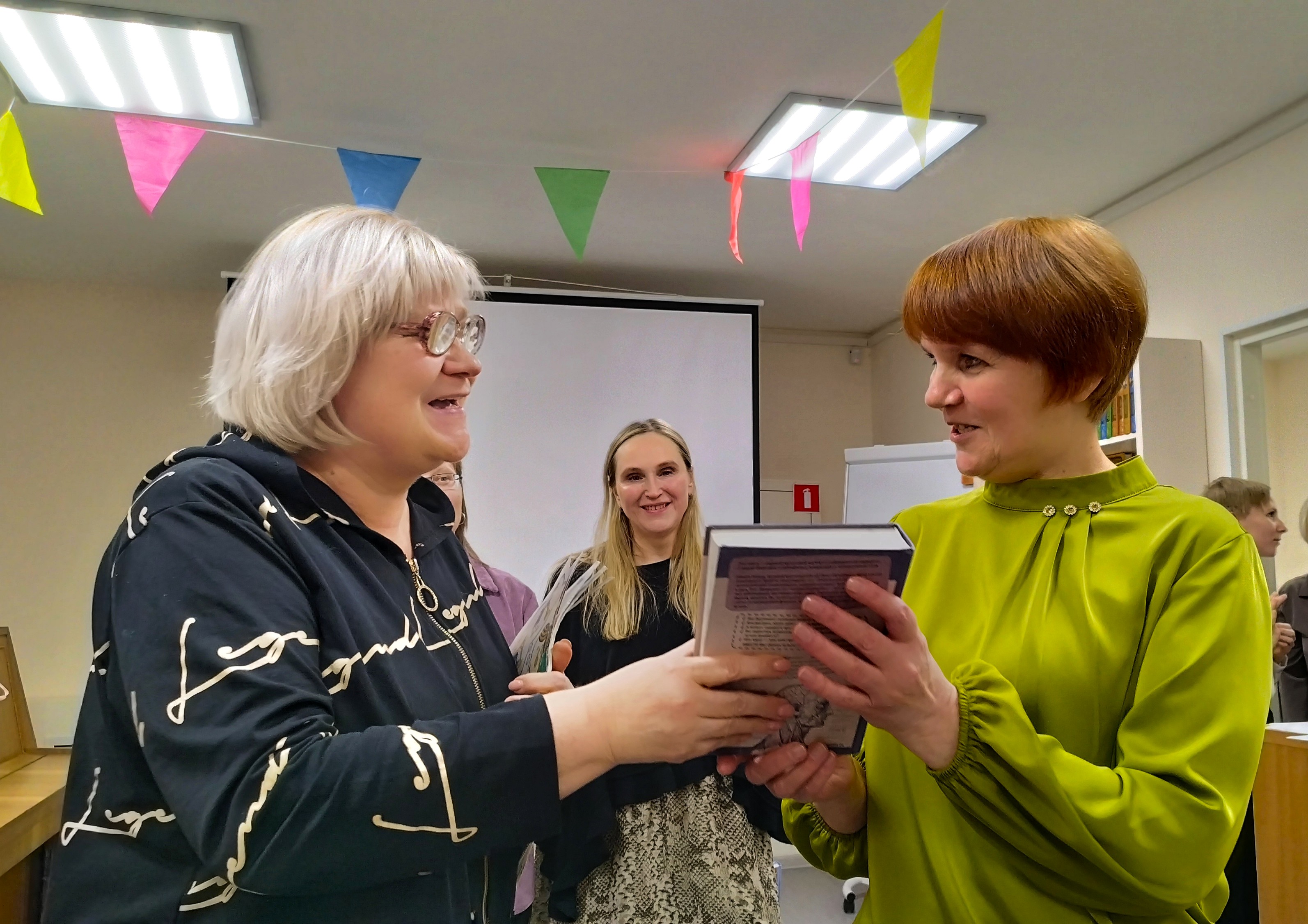 Поздравления прозвучали и от других коллег. Галина Владимировна Опрышко, заведующий Библиотекой № 8 (Сыктывкарская ул., д. 1), подарила юбилярам только что вышедшие книги карельской писательницы Анны Тиллес.