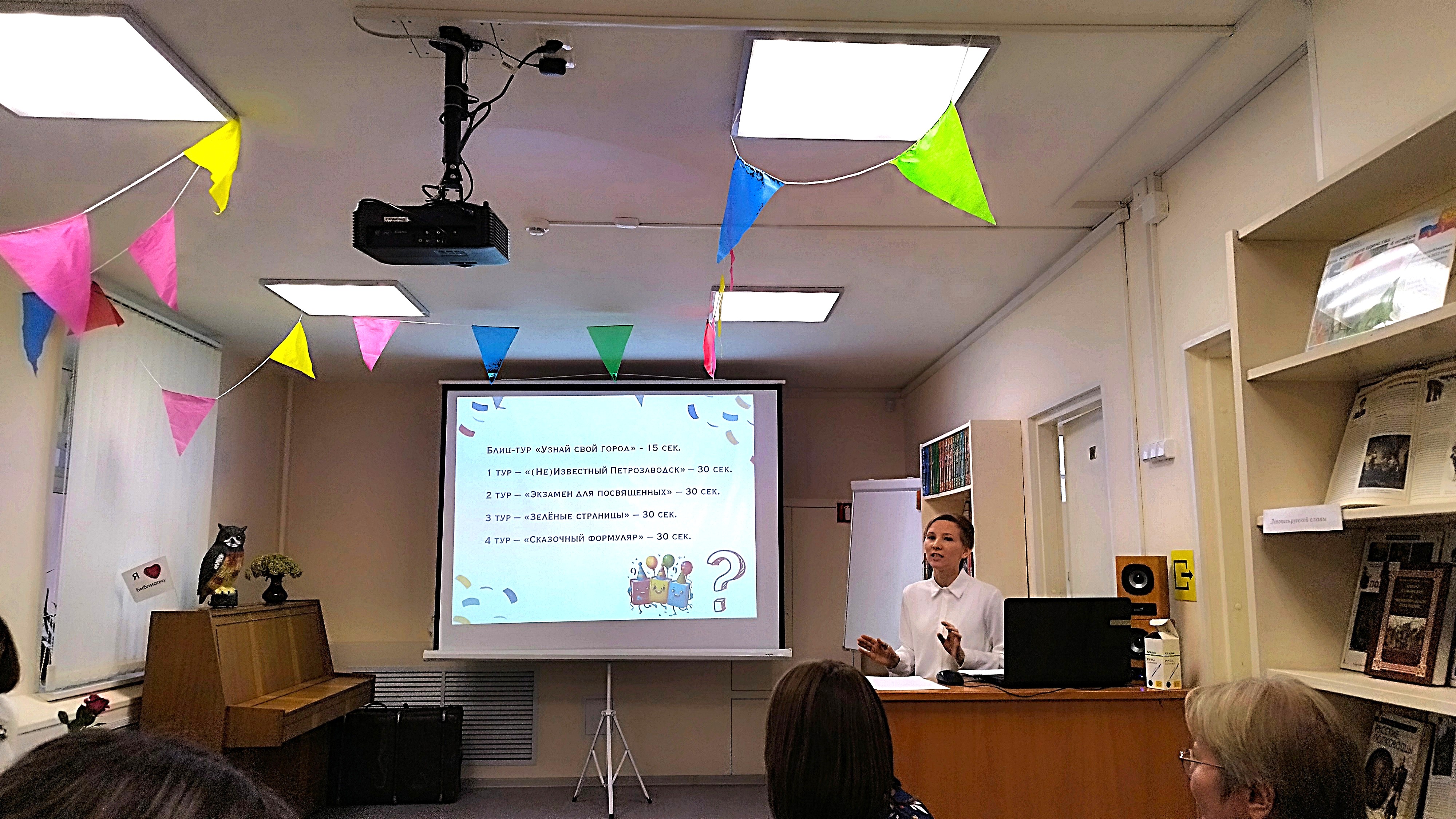 Участникам увлекательной игры предстояло пройти четыре тура. За короткое время команды должны были ответить на вопросы о Петрозаводске и истории библиотек-юбиляров. Все с большим удовольствием приняли участие в этом весёлом соревновании.