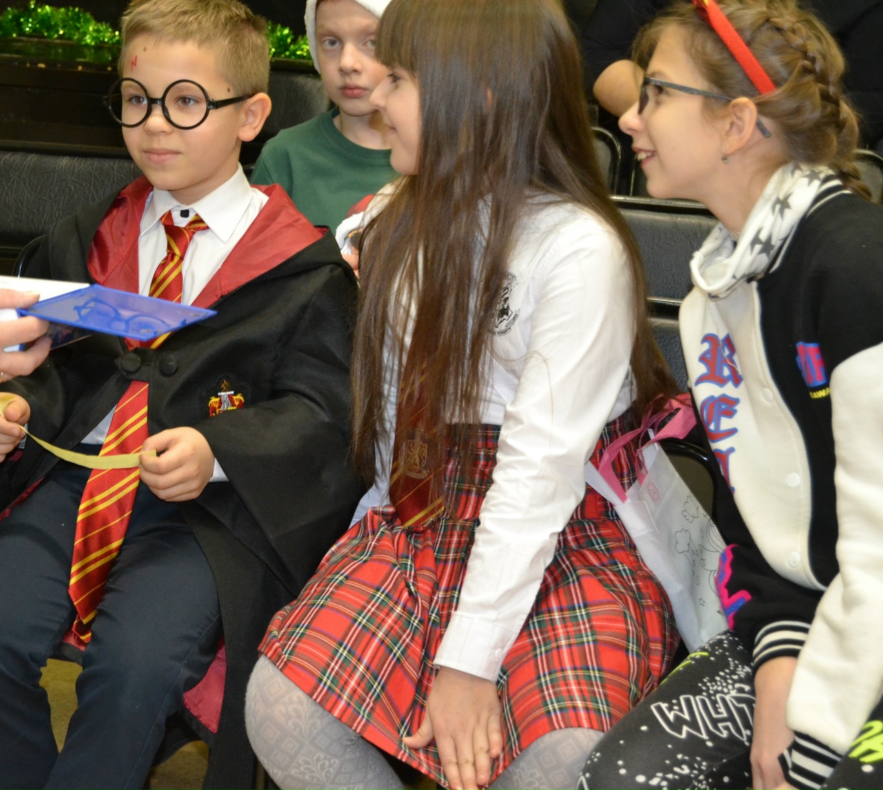 Дети активно участвовали в викторине по новогодним сказкам и в конкурсах: «Весёлый колпачок», фанты, «Танец с Дедом Морозом». Ребята отгадывали загадки, а взрослые отвечали на вопросы шуточной викторины про Новый год.