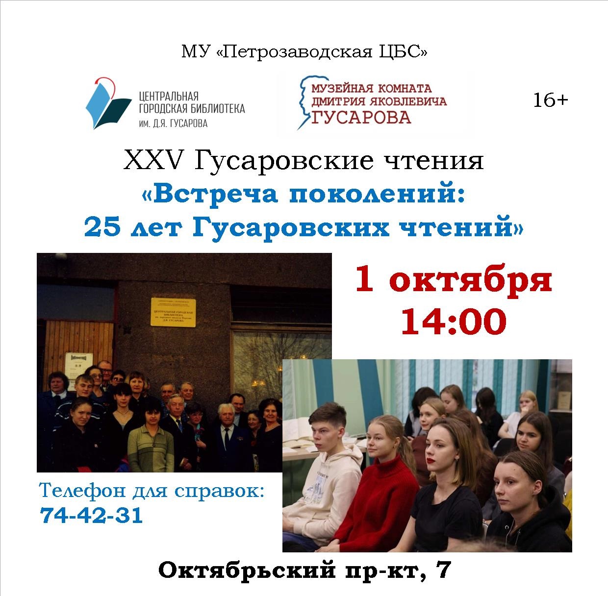 В 2025 году в главной городской библиотеке столицы Карелии Петрозаводская ЦБС провела XXV Гусаровские чтения. Это ежегодное мероприятие – значимое событие в культурной жизни республики, это дань уважения памяти народного писателя Карелии Дмитрия Яковлевича Гусарова и возможность раскрыть современному читателю карельскую литературу и журналистику второй половины прошлого века. Традиция проведения Гусаровских чтений зародилась в 2001 году, когда Центральной городской библиотеке Петрозаводска присвоили имя легендарного писателя.
