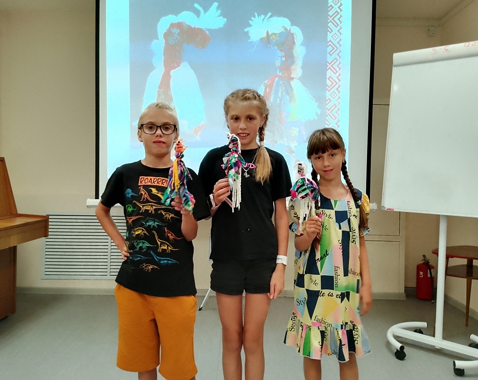 Юные читатели узнали, как без современной бытовой техники карелы вели домашнее хозяйство, как гладили бельё при помощи деревянного «утюга», в какие игрушки играли в те времена ребятишки. Также участники отгадали загадки и посмотрели мультфильм с кукольной анимацией «Одна лошадка белая». Особый интерес у детей и родителей вызвал мастер-класс по изготовлению народной куклы на палочке «Коняшка». Это старинный оберег, который считался защитником рода и приносил ребенку благословение и особое покровительство Солнца.