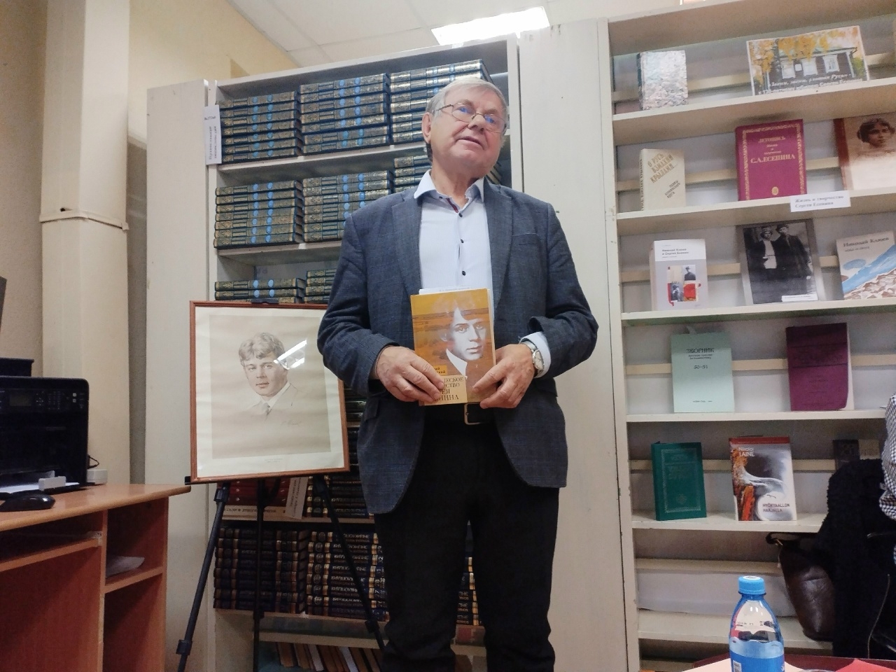 Открыл праздник песней на стихи С. Есенина «Видно так заведено навеки» (музыка В. Пака) гость из Вытегры, поэт и бард Алексей Землянин. Сложности есенинской простоты была посвящена презентация книги петербургского профессора Валерия Анатольевича Доманского «Поэтическое мастерство Сергея Есенина», удостоенного международной литературной Премии имени Сергея Есенина «О Русь, взмахни крылами…». Что в основе художественной системы поэта? – образ дерева. Небо и вода, деревня и город – как они поданы в творчестве пиита, в чём своеобразие его метафор – об этом читатели смогут узнать из книги (монография подарена библиотеке).